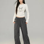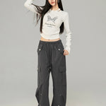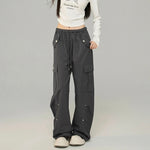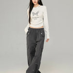 MacyMccoy 2505 抽绳褶皱工装阔腿裤 灰