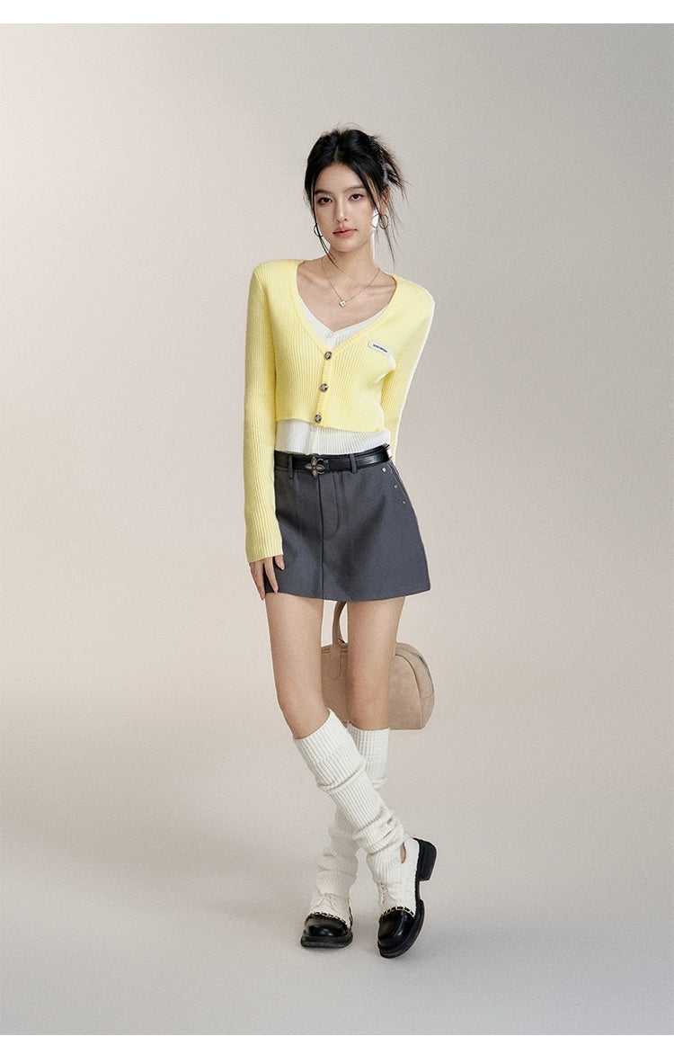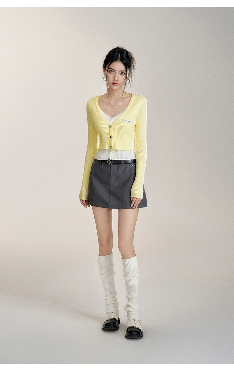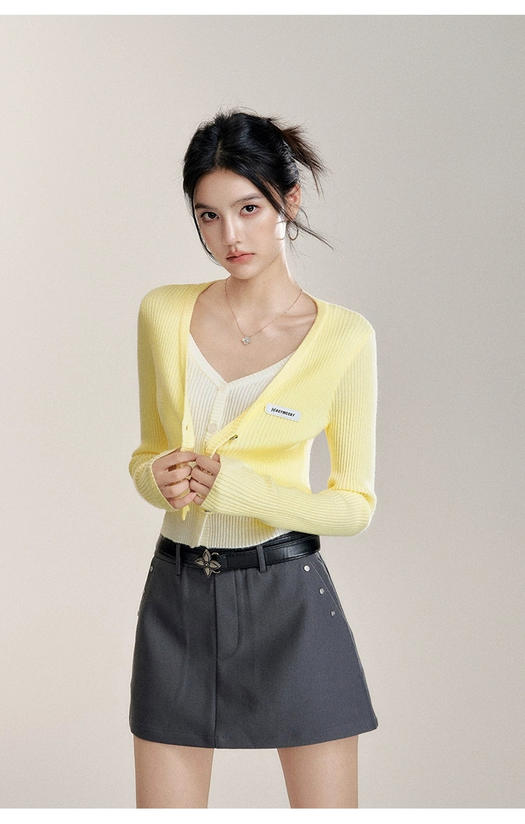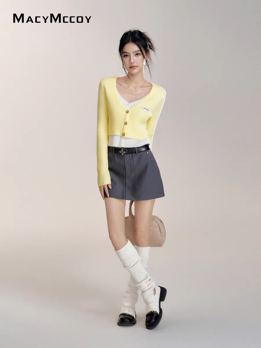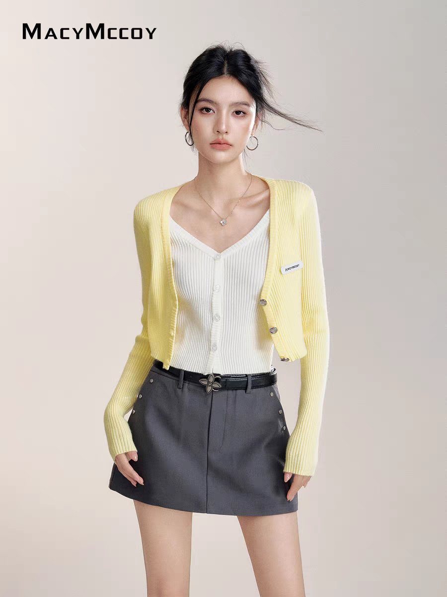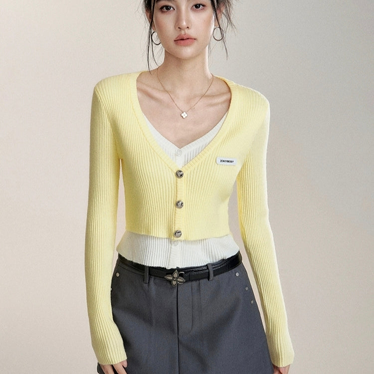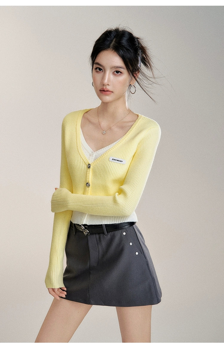MacyMccoy 2510 假两件撞色针织开衫