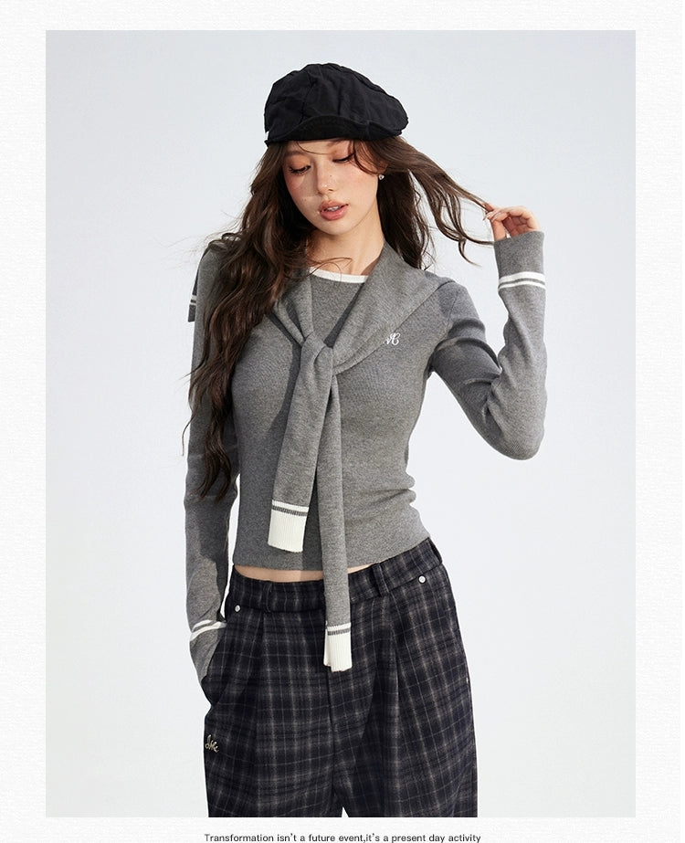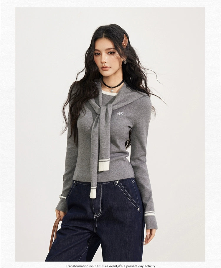 MacyMccoy 2510 披肩针织两件套 灰