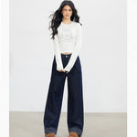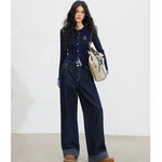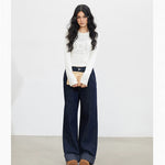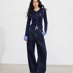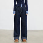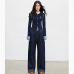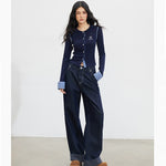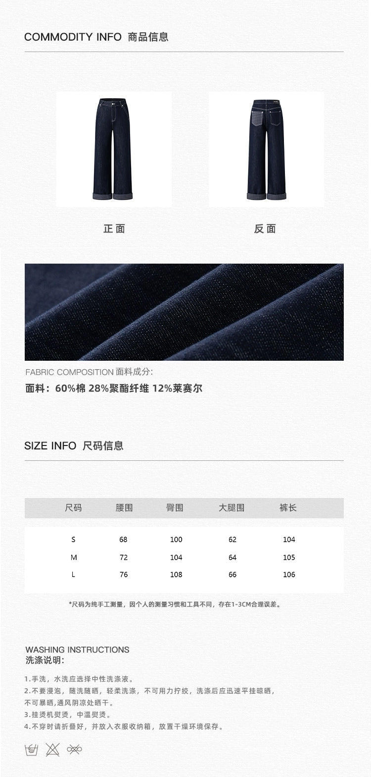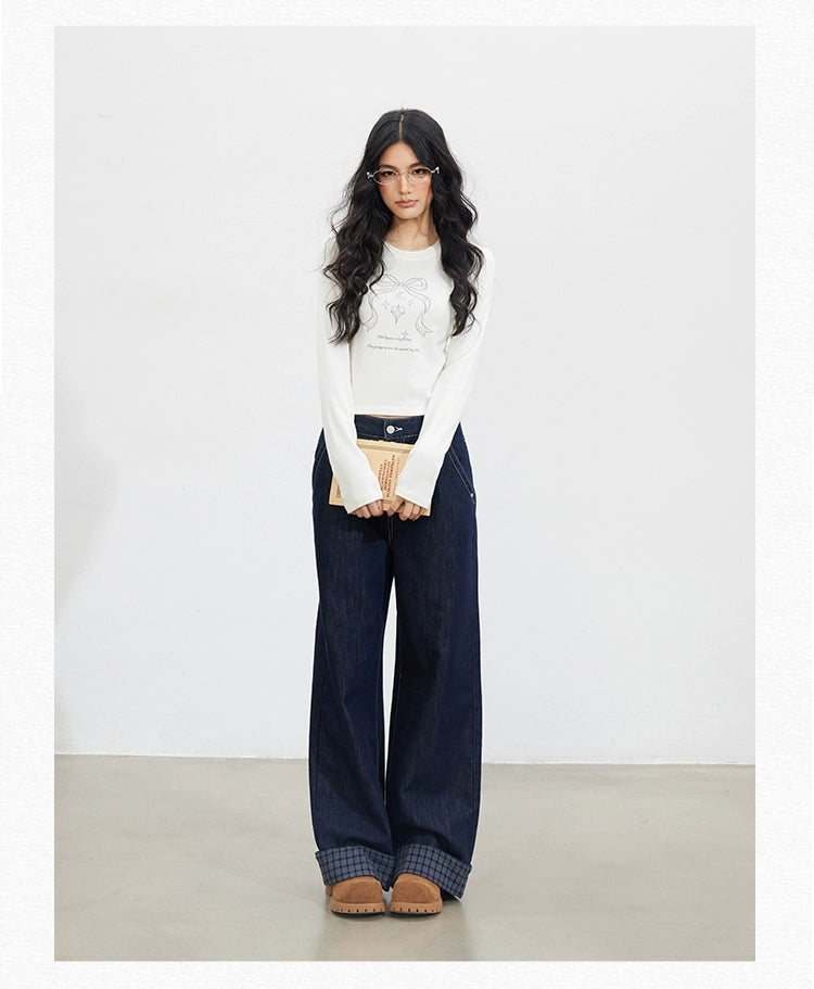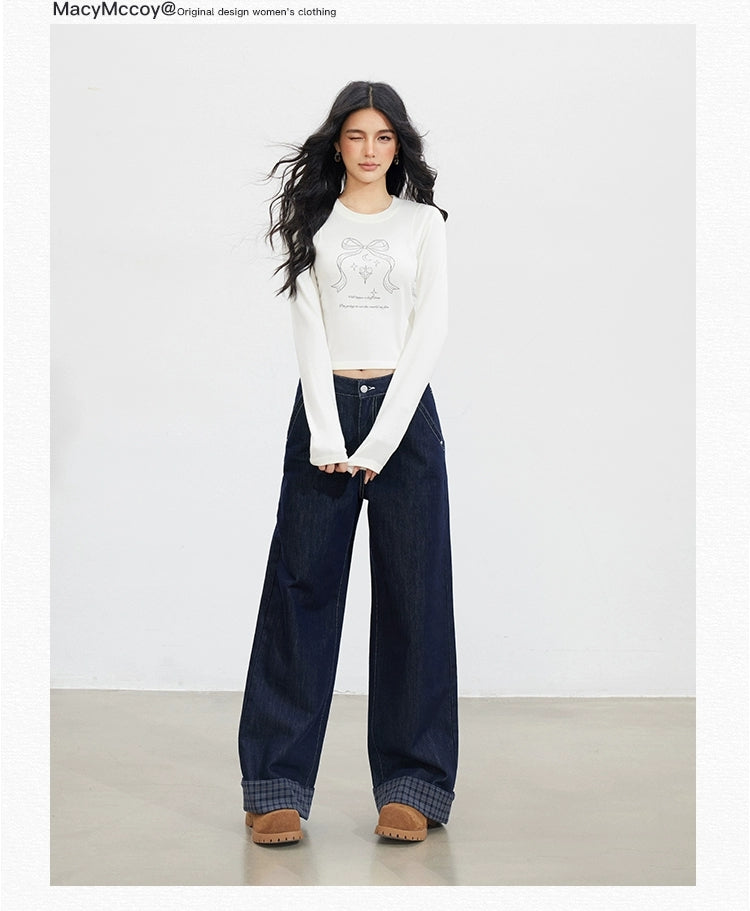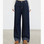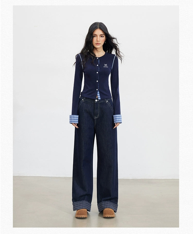 MacyMccoy 2510 格子牛仔拼接阔腿裤