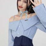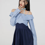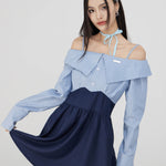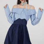 MacyMccoy SS2308 一字领衬衫连衣裙