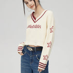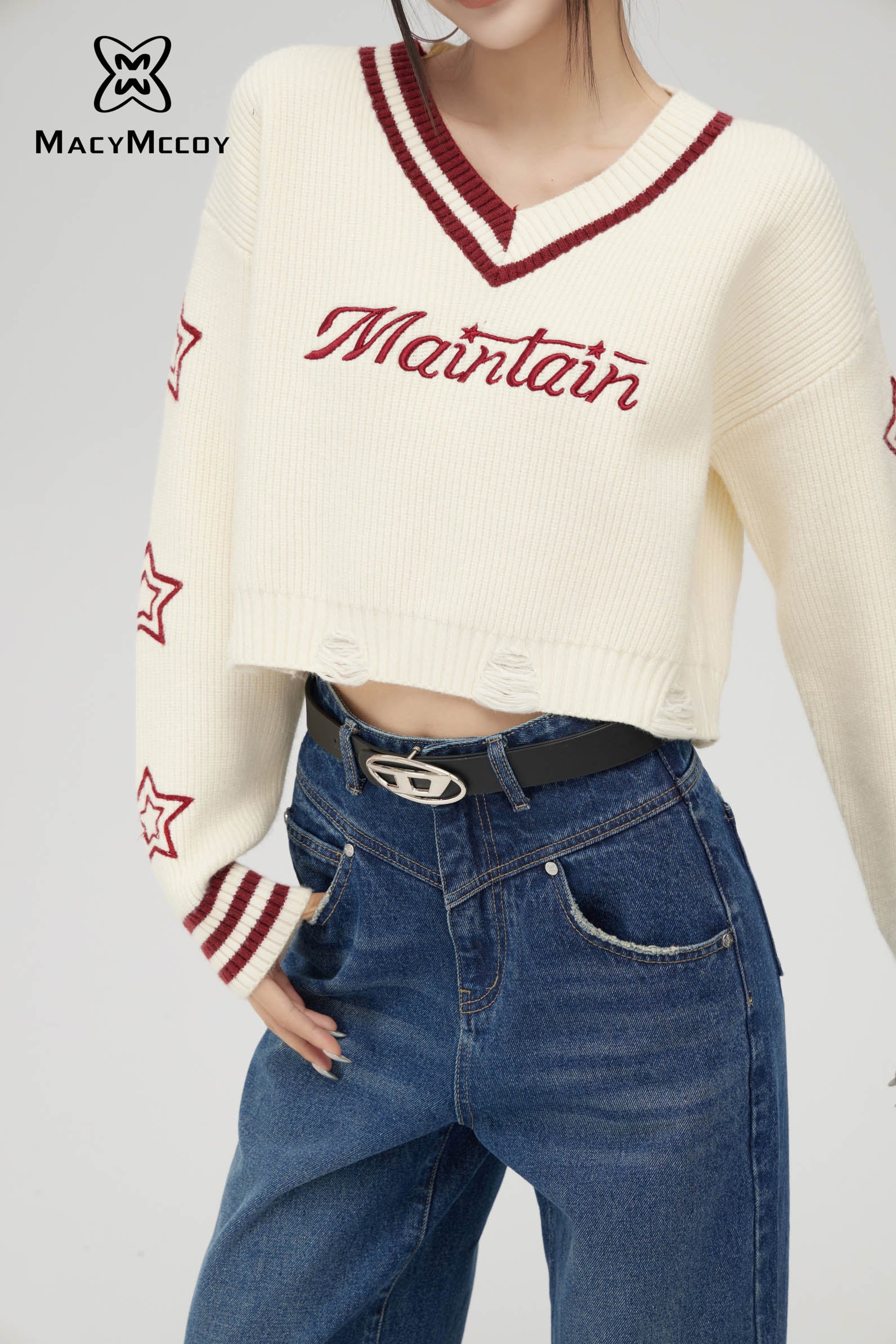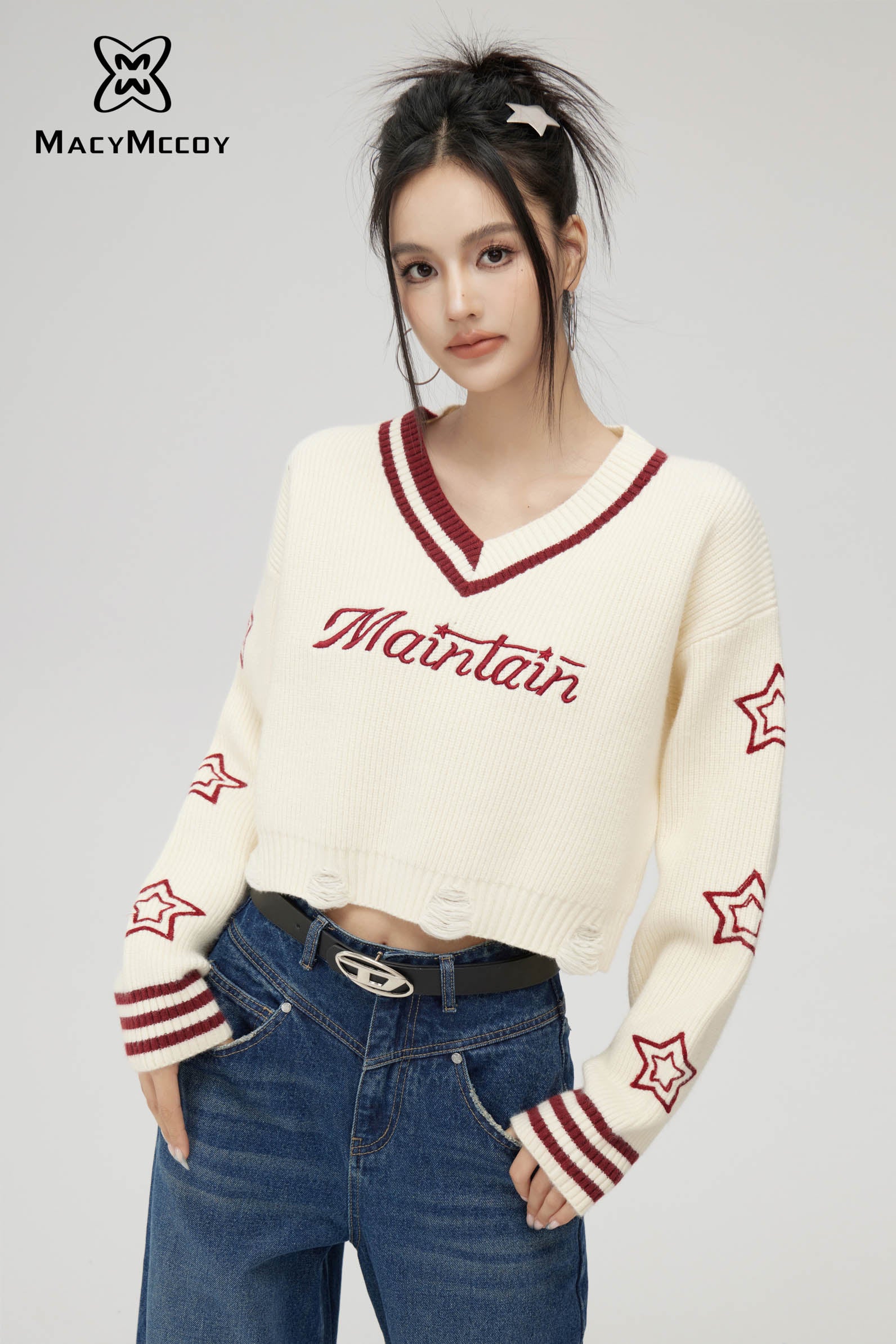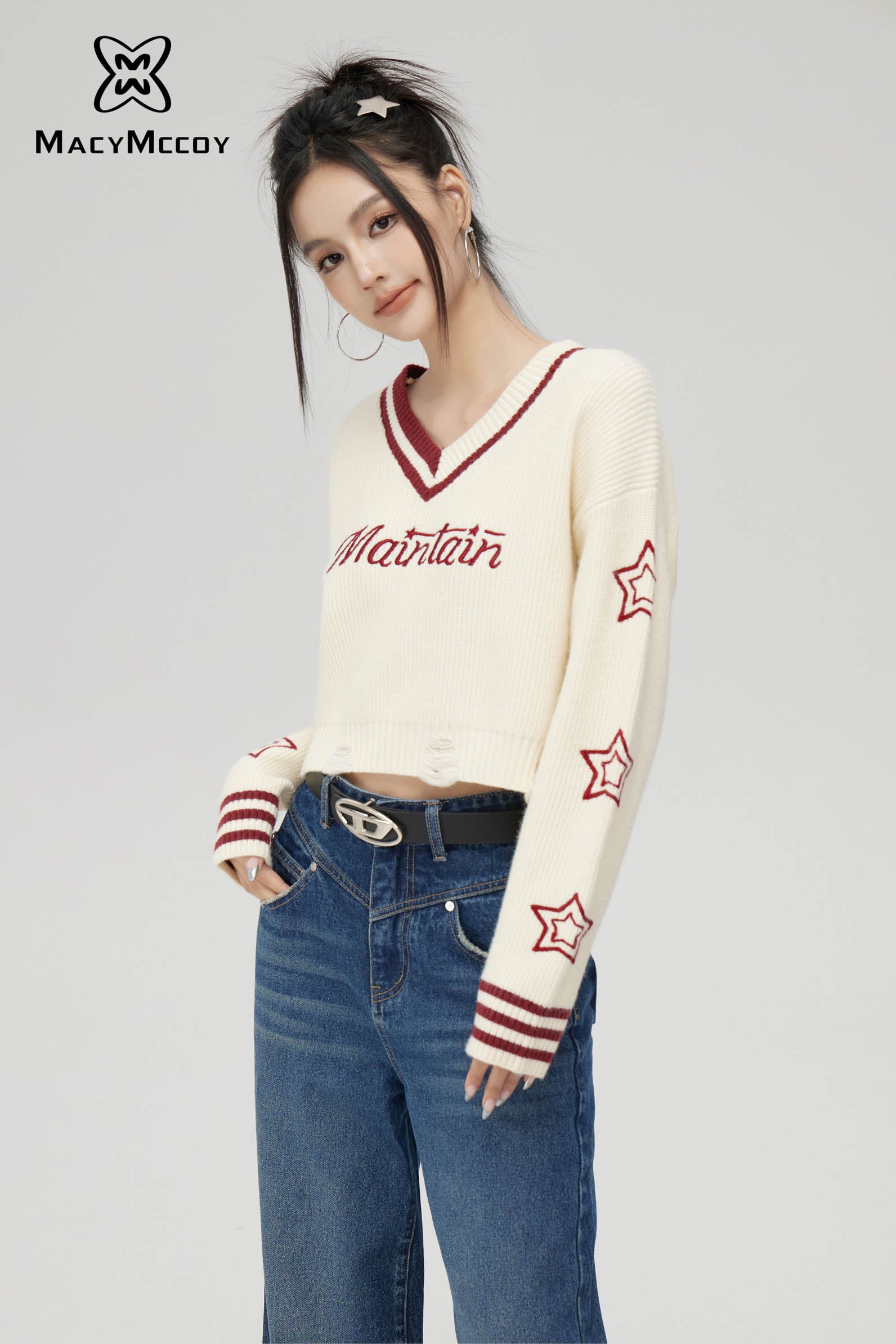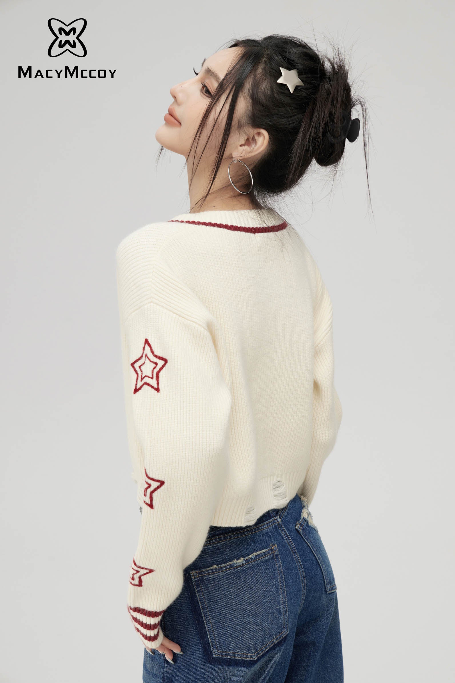 MacyMccoy SS2310 假星星刺绣短款毛衣 米白