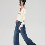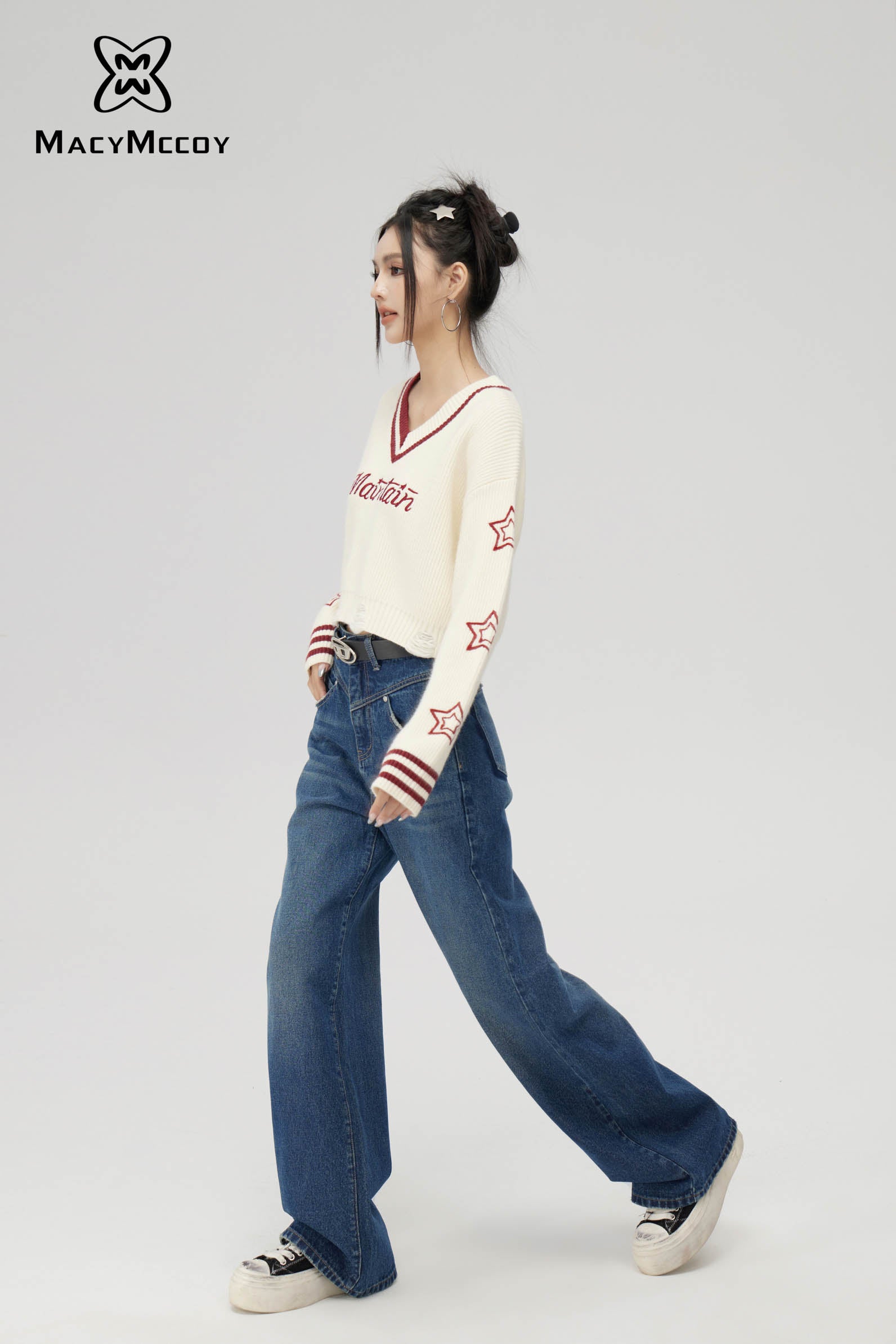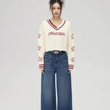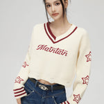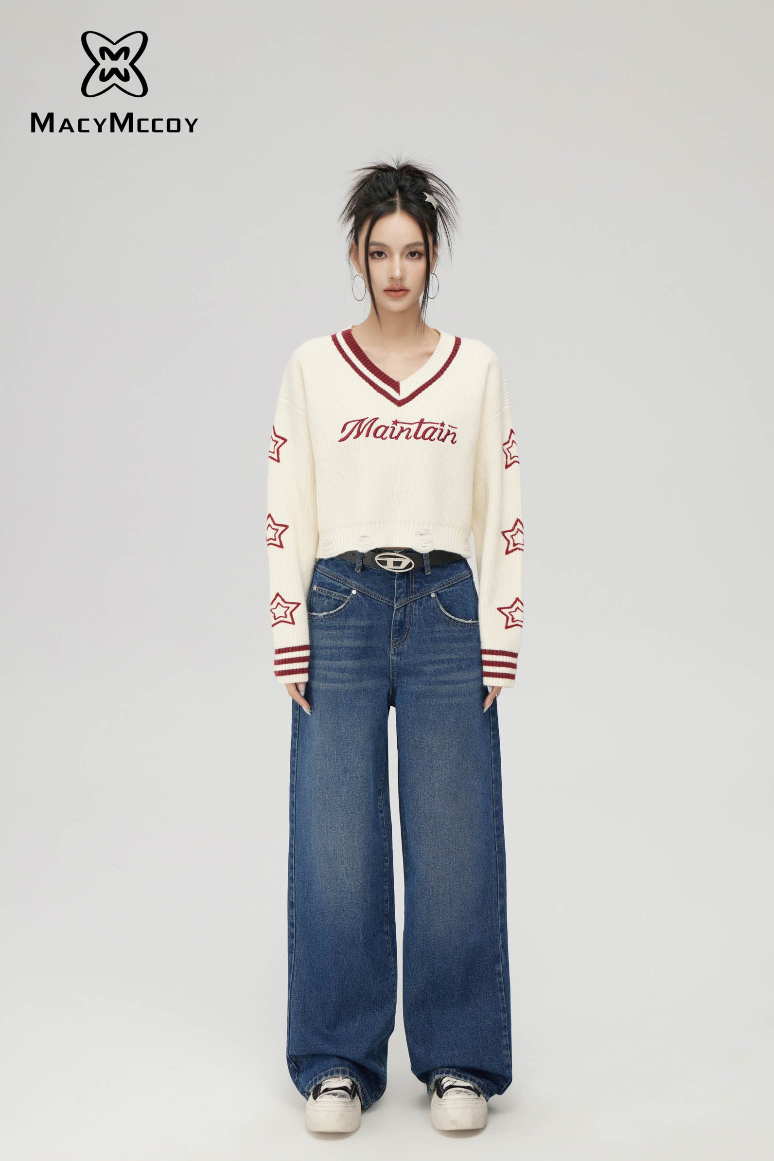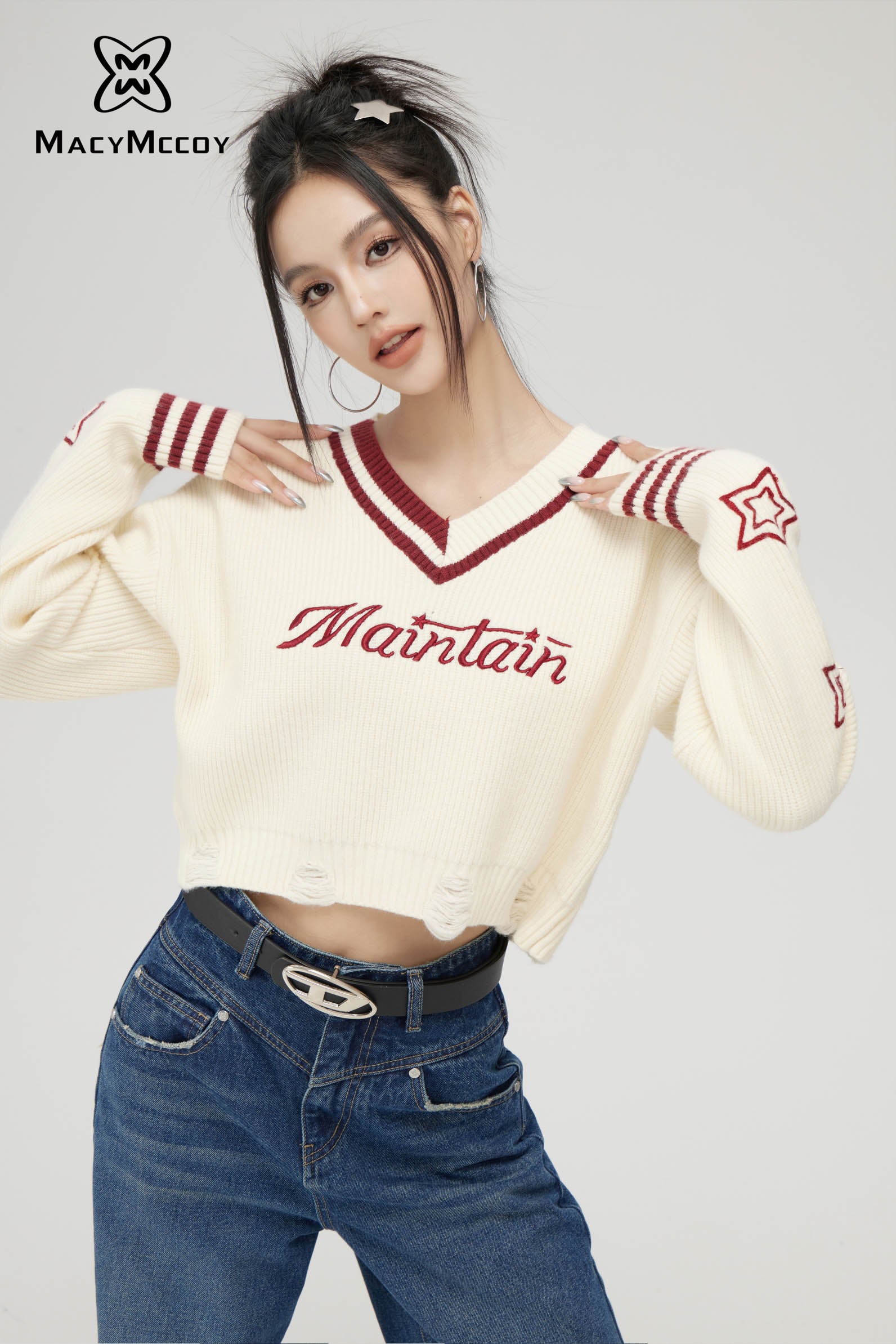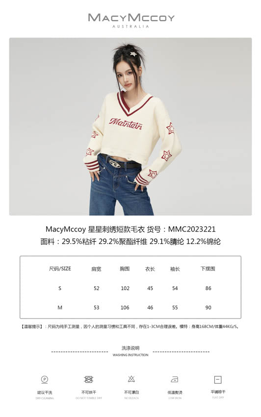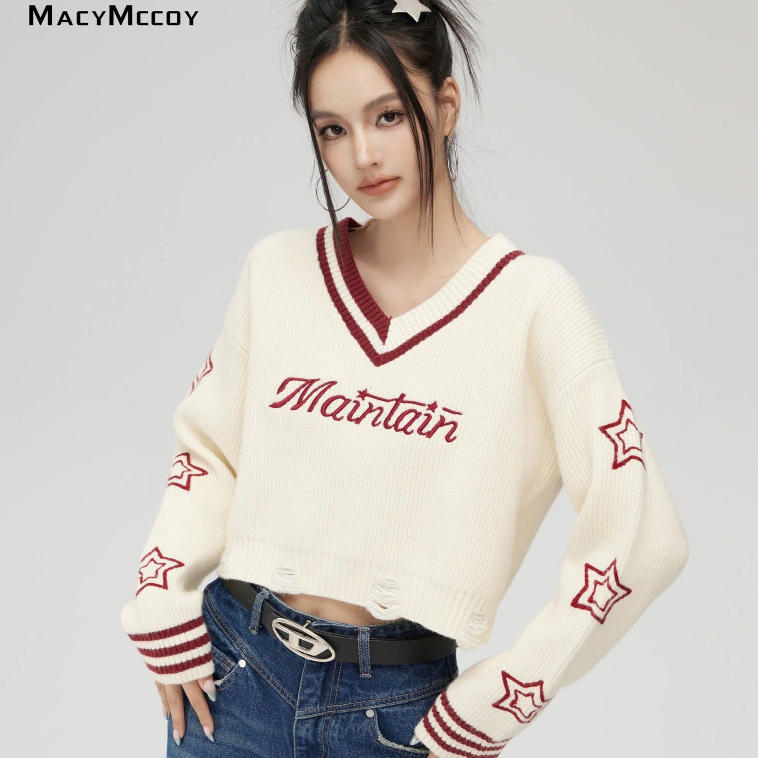MacyMccoy SS2310 假星星刺绣短款毛衣 米白