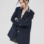 MacyMccoy SS2310 廓形毛呢西装外套 藏青