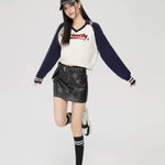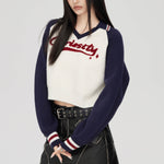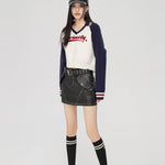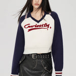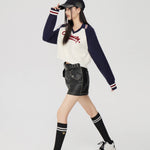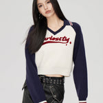 MacyMccoy SS2310 撞色V领短款毛衣 藏青