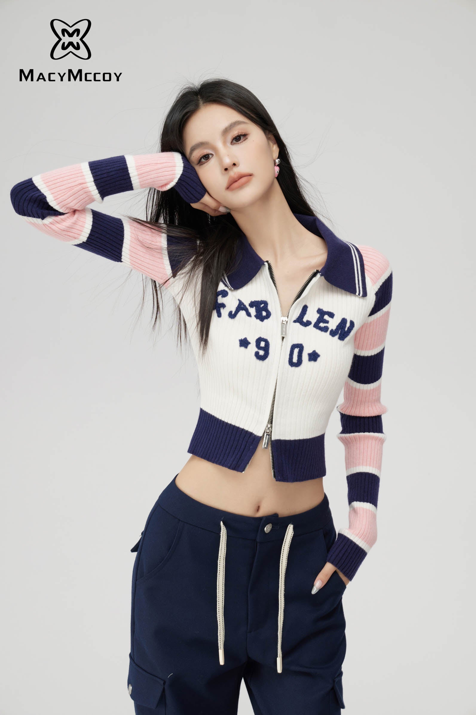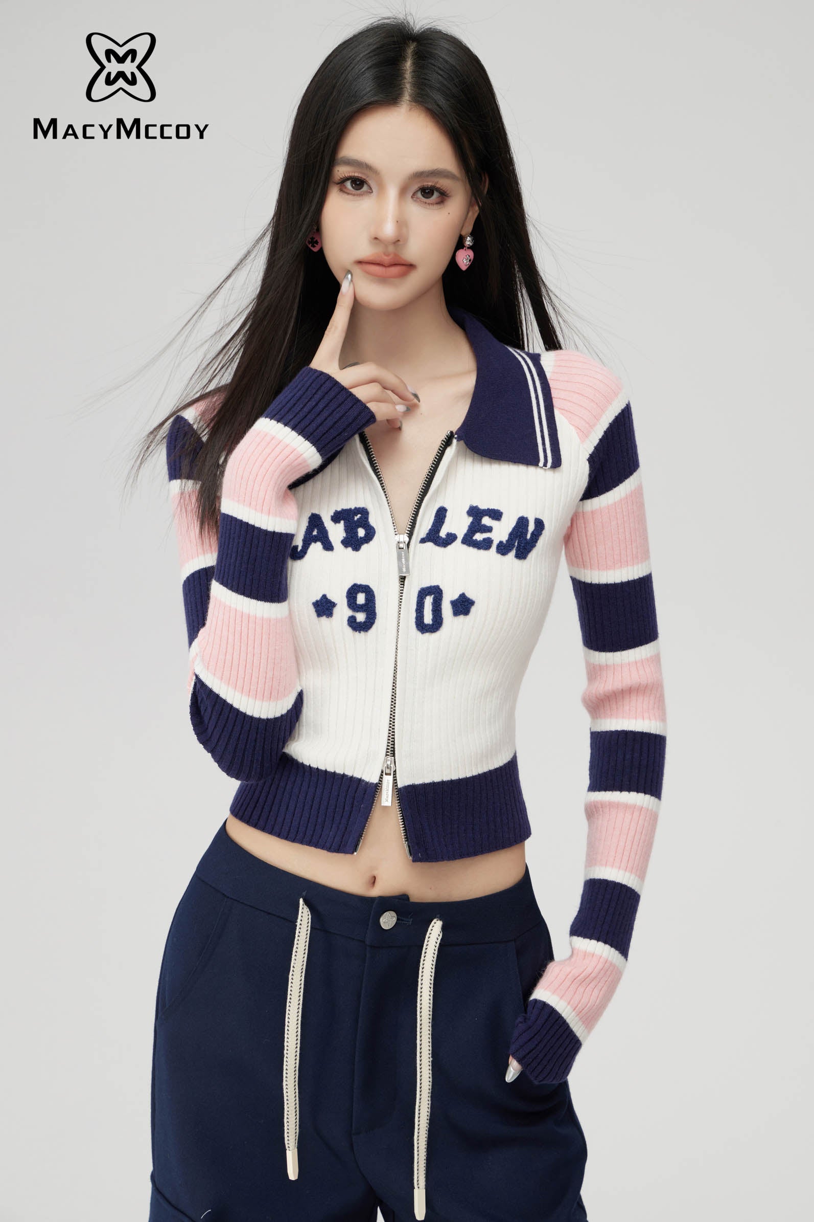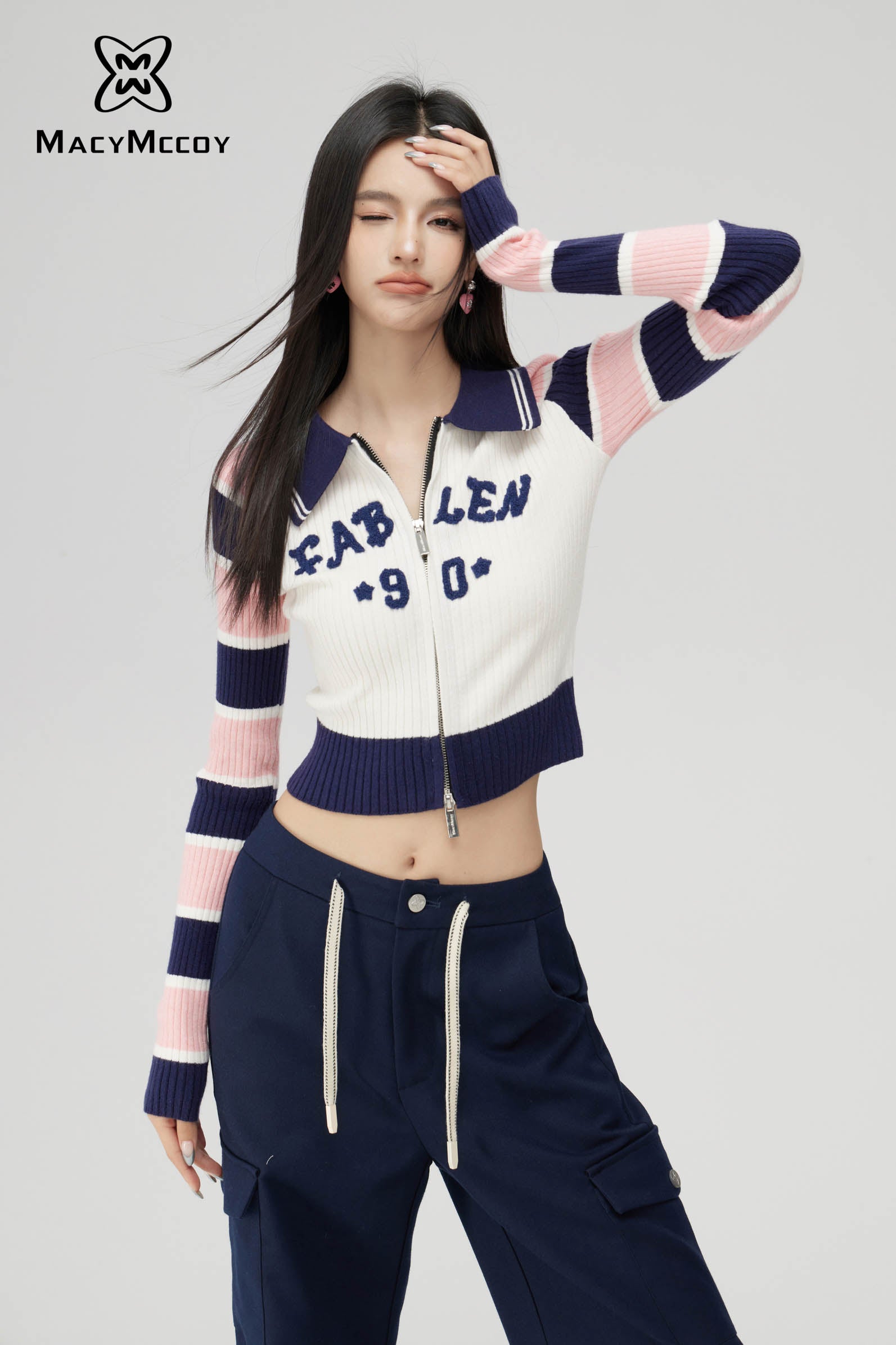 MacyMccoy SS2310 条纹拼接针织上衣 米