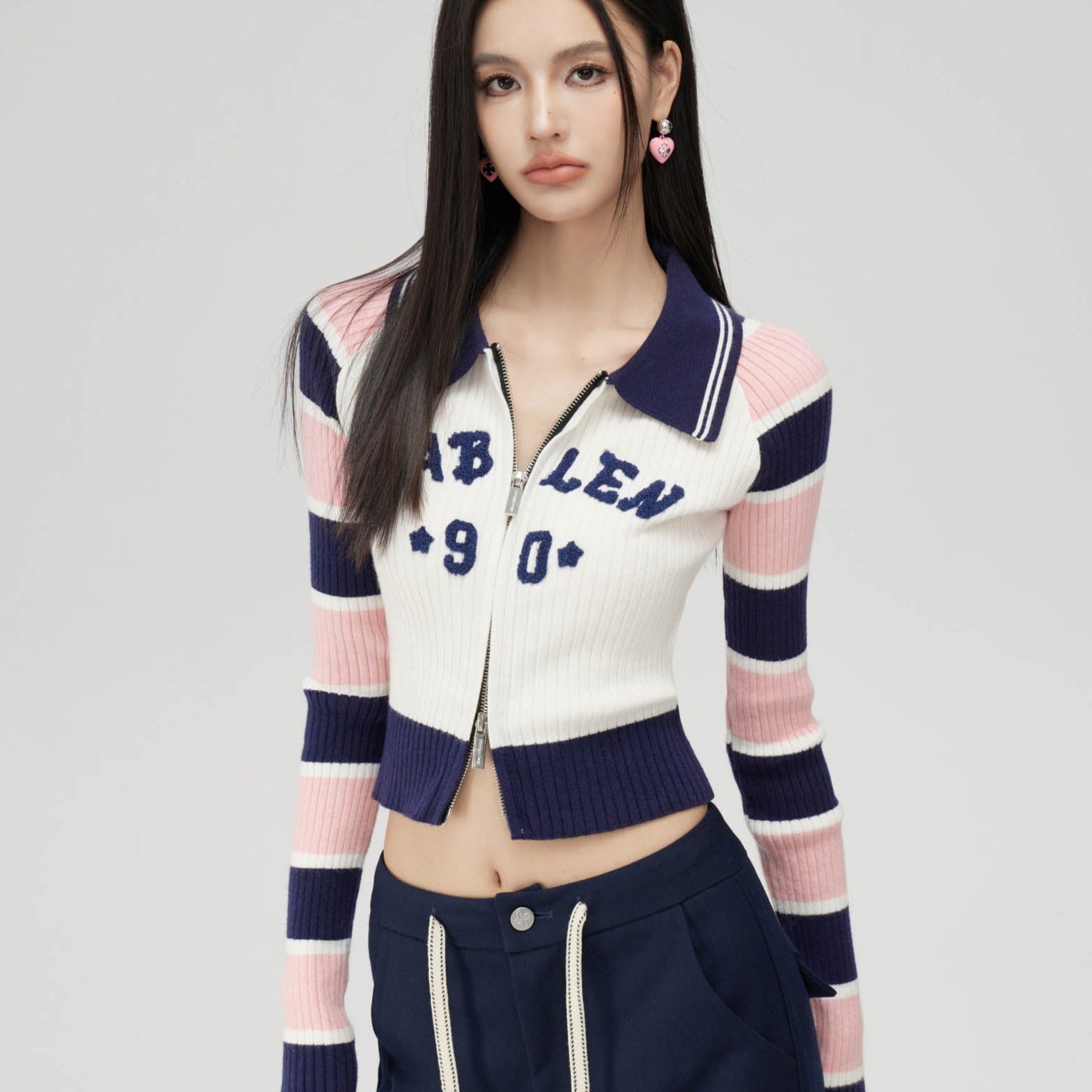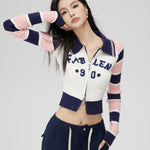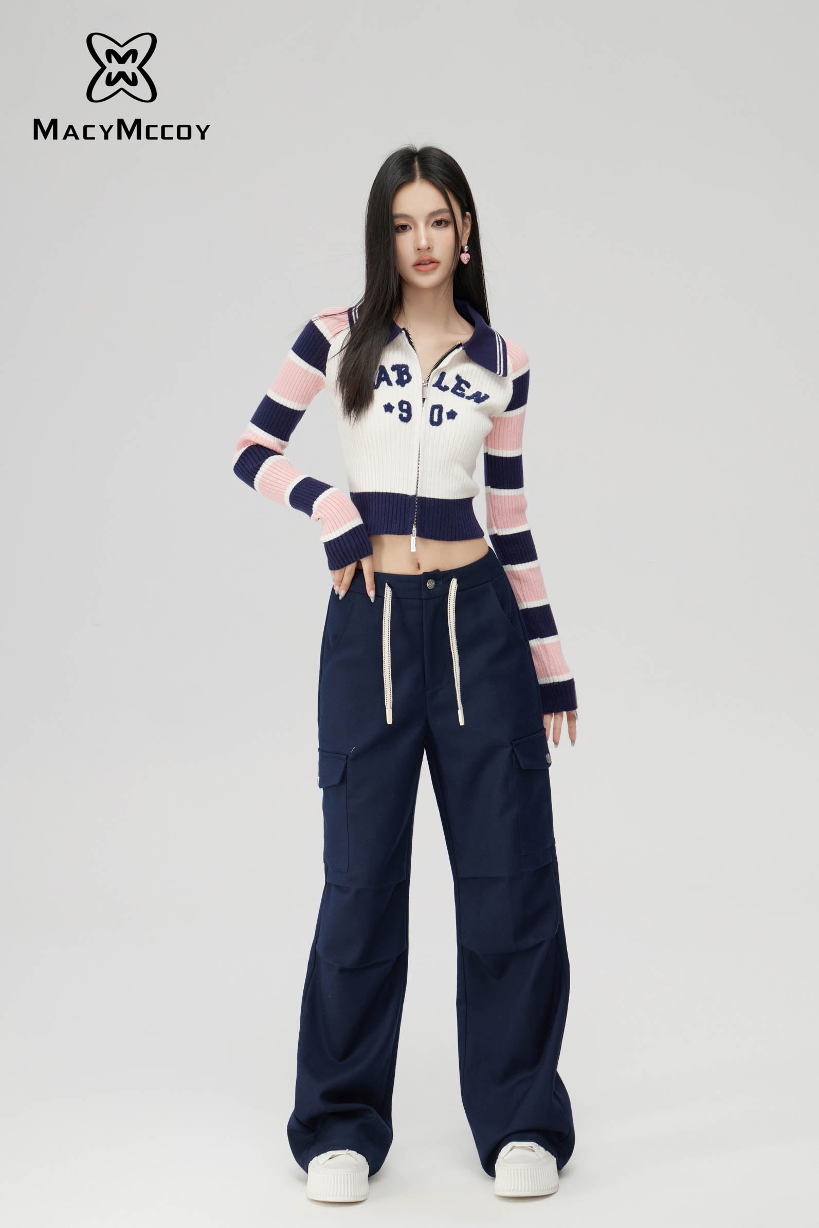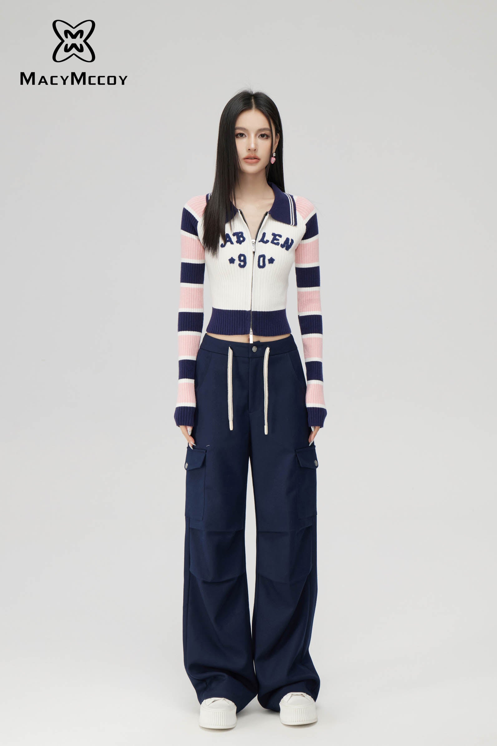 MacyMccoy SS2310 条纹拼接针织上衣 米