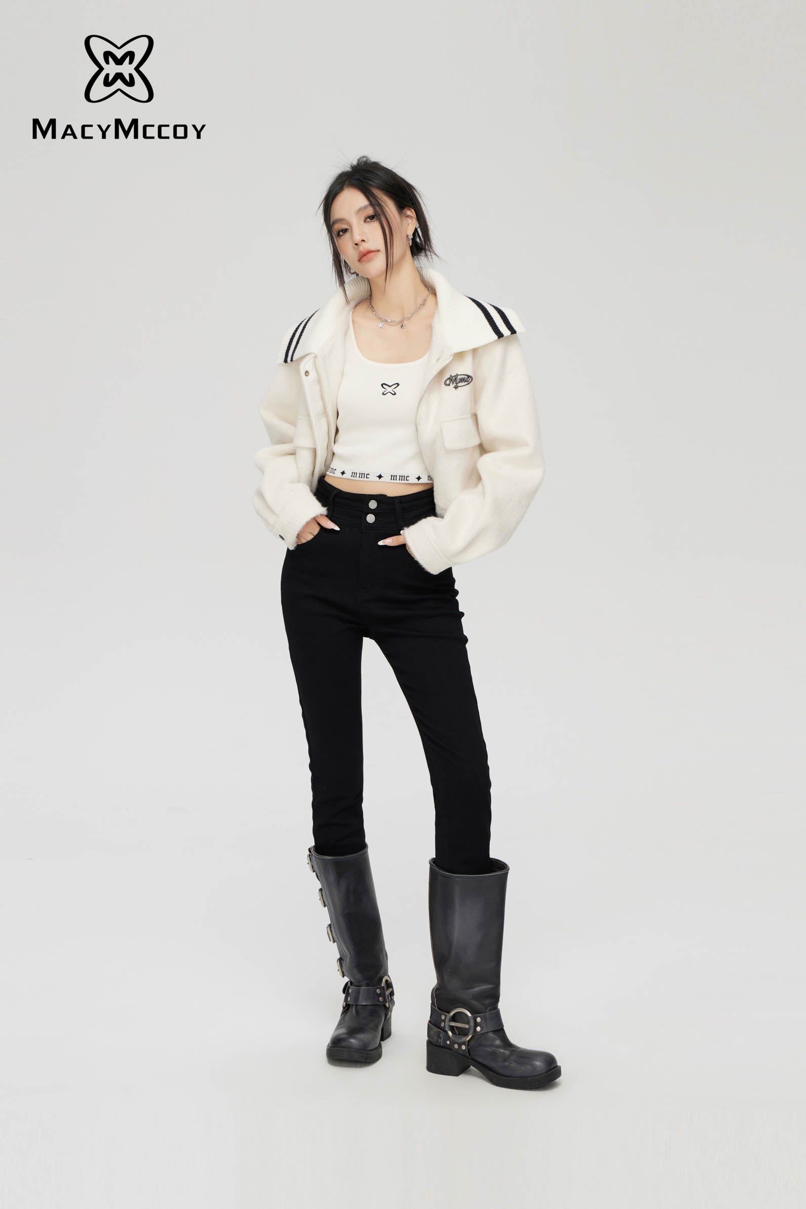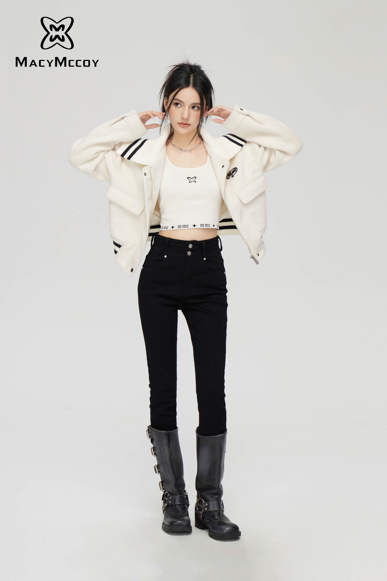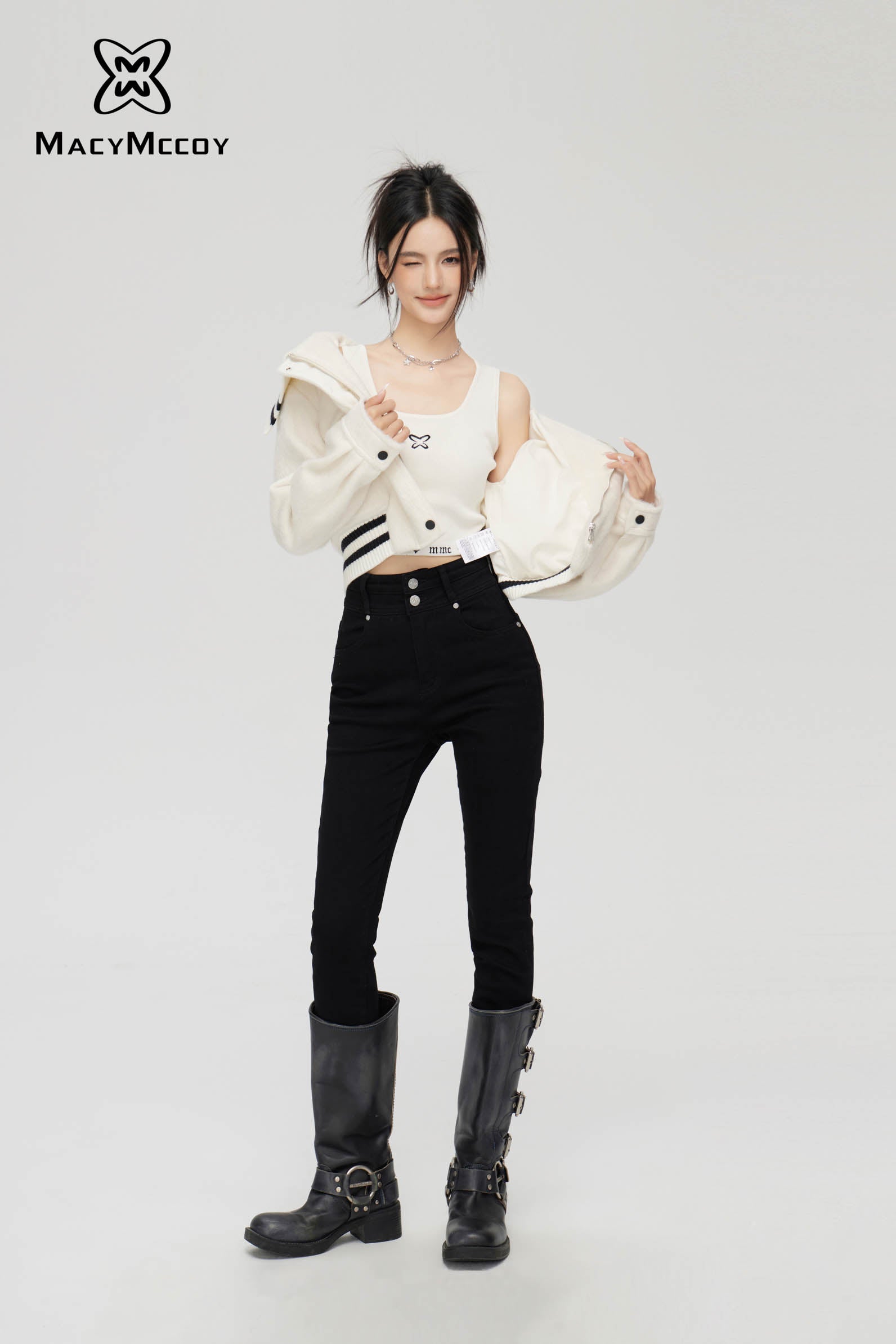 MacyMccoy SS2312 高腰小脚加绒牛仔裤