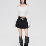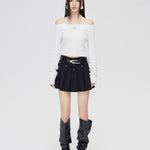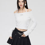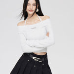 MacyMccoy SS2401 一字领亮丝针织上衣 白