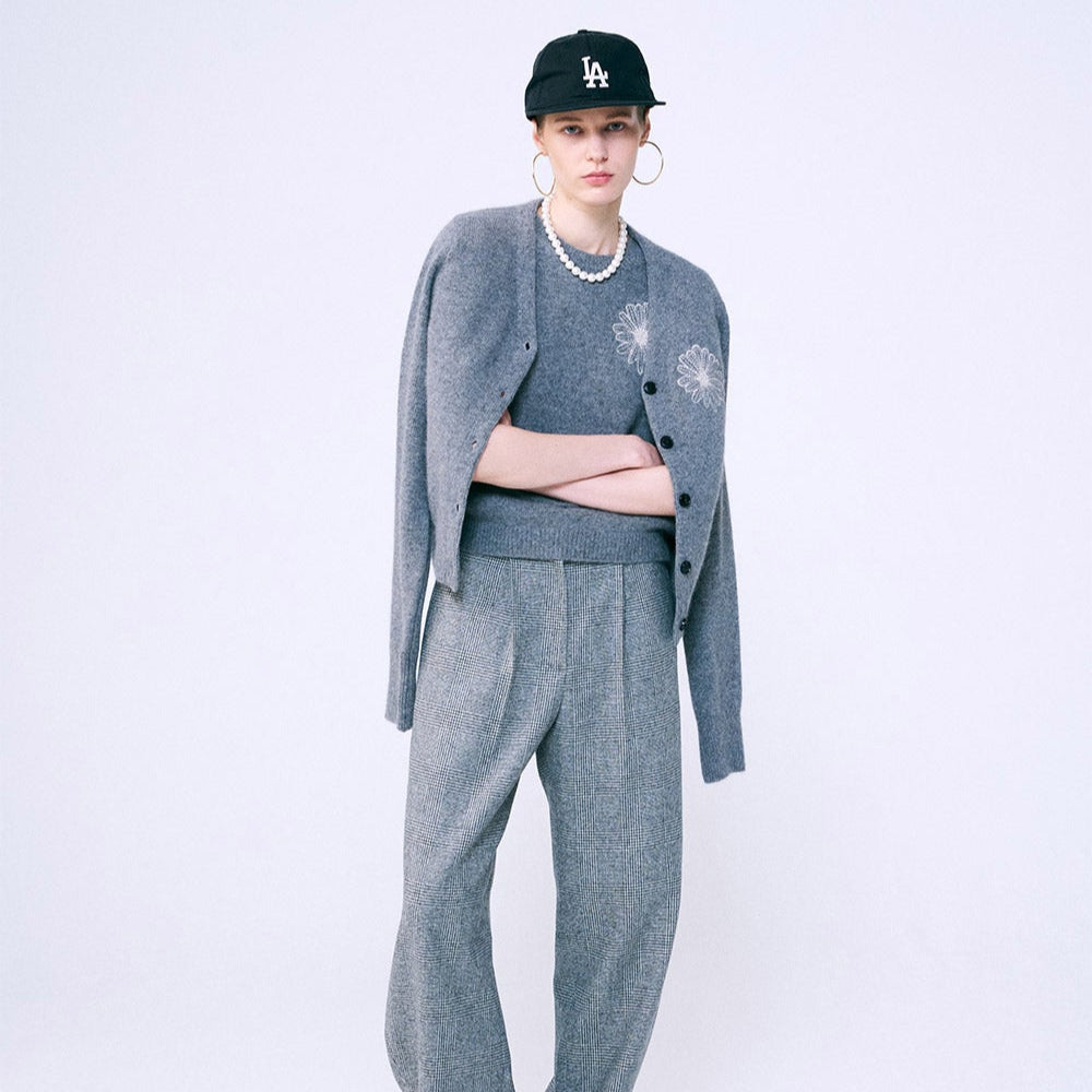 MARDI MERCREDI 2502 RACCOON BLENDED CARDIGAN V NECK_GREY IVORY