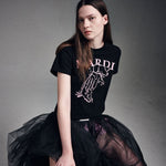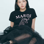 MARDI MERCREDI 2502 摇尾珍珠小狗短袖t恤 黑粉