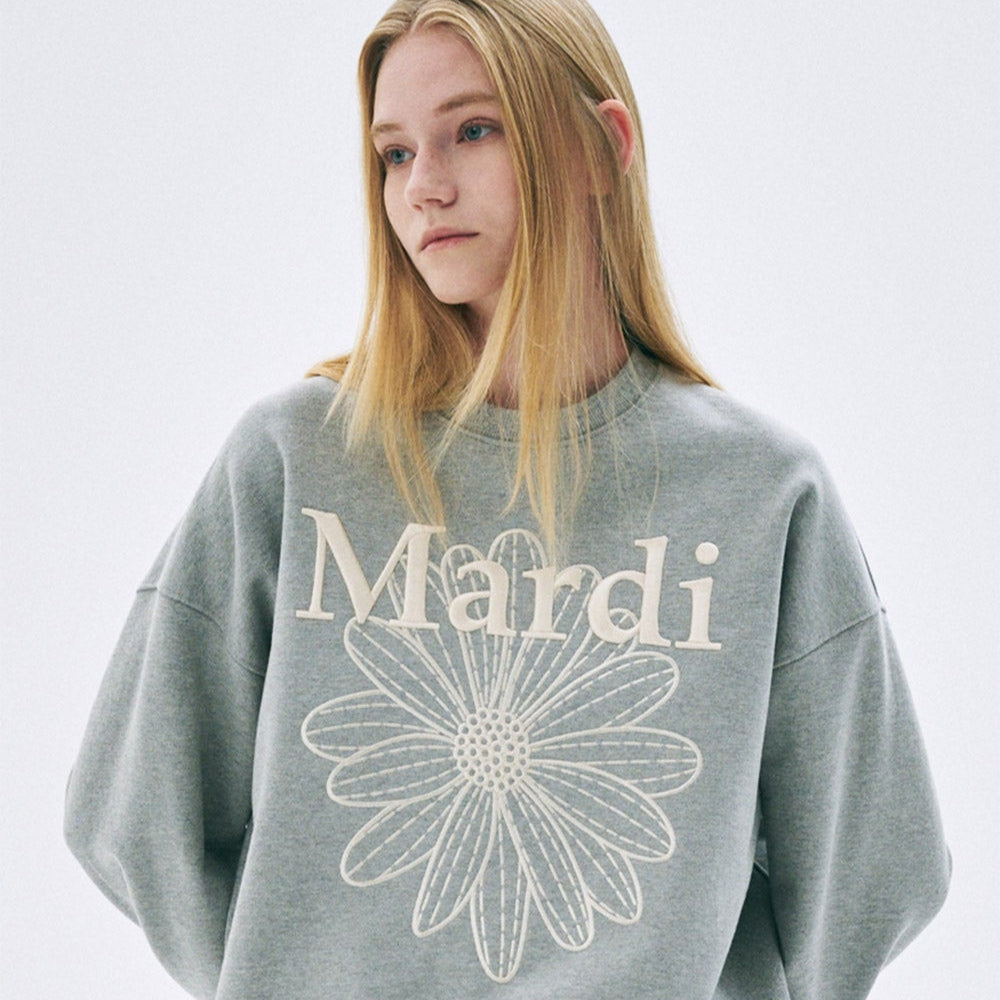 MARDI MERCREDI 2502 SWEATSHIRT FLOWERMARDI NEEDLEWORK_GREY CREAM