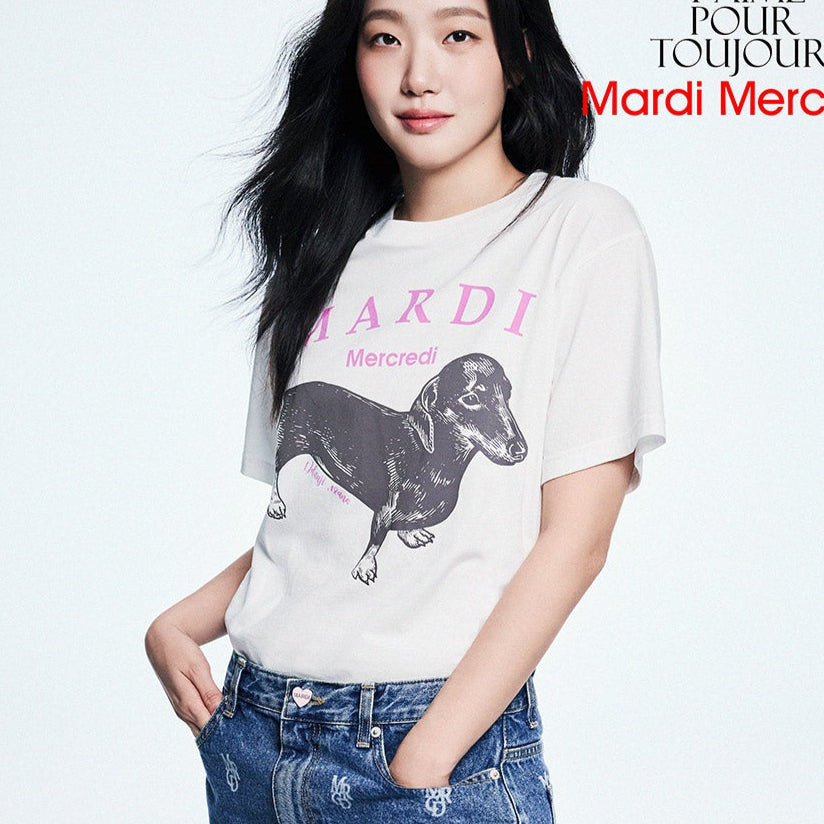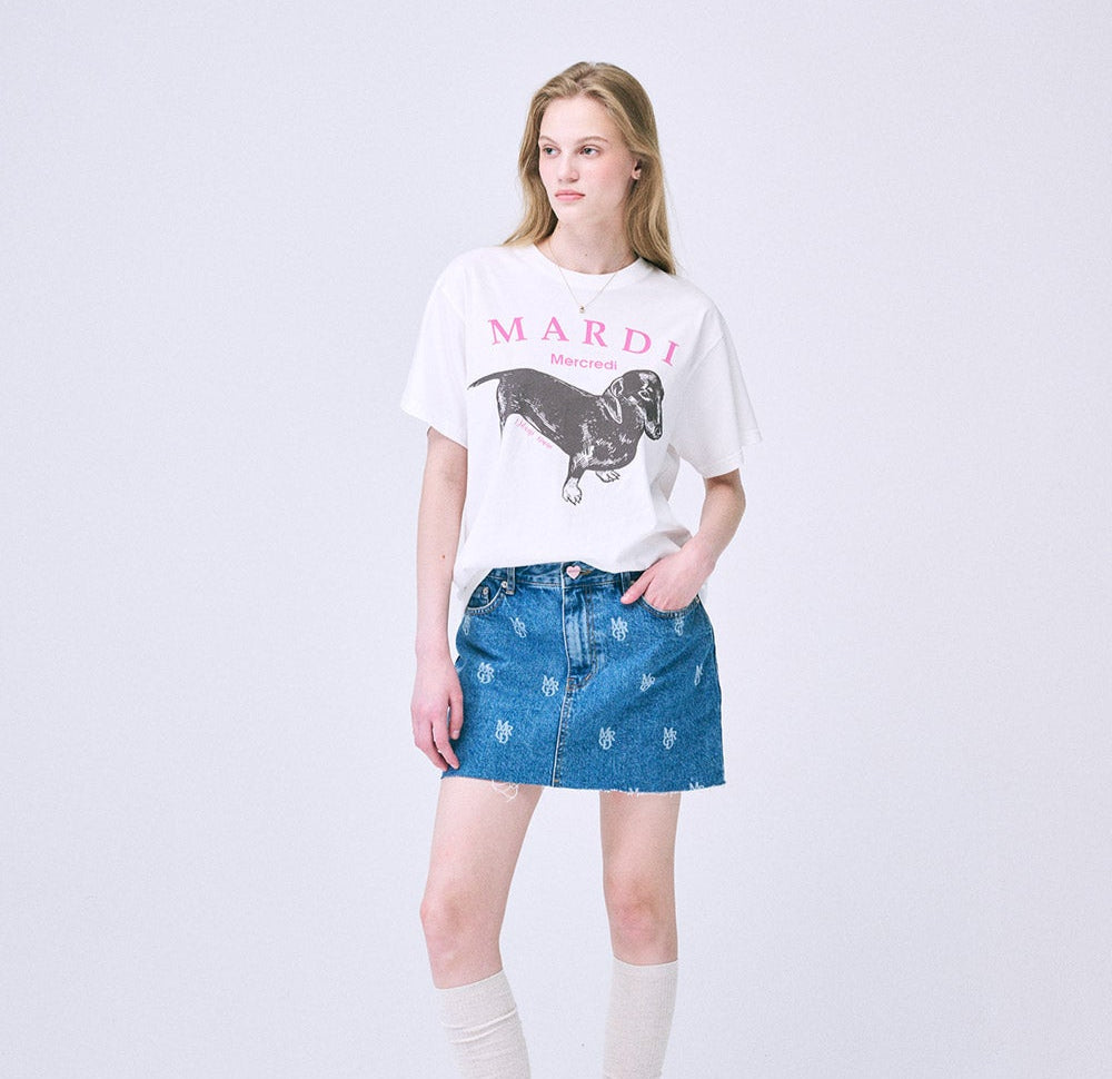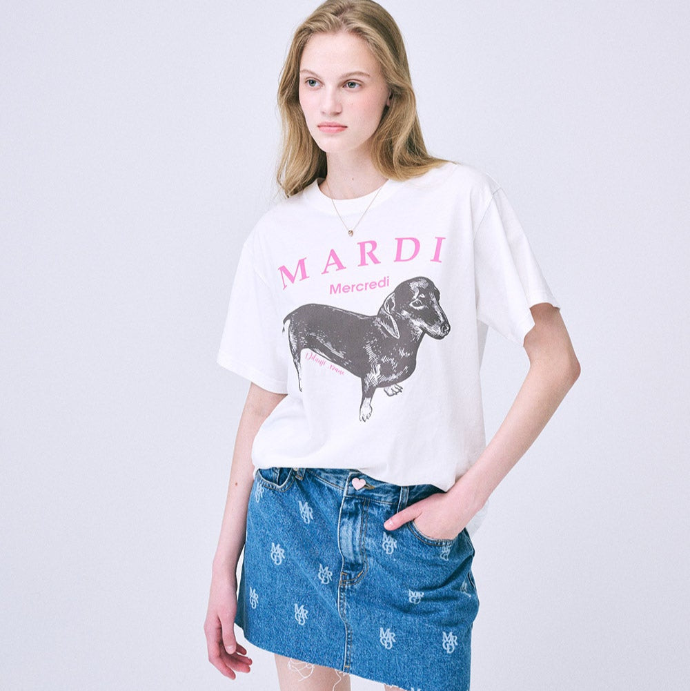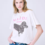 MARDI MERCREDI 2502 经典腊肠狗短袖t恤 粉白