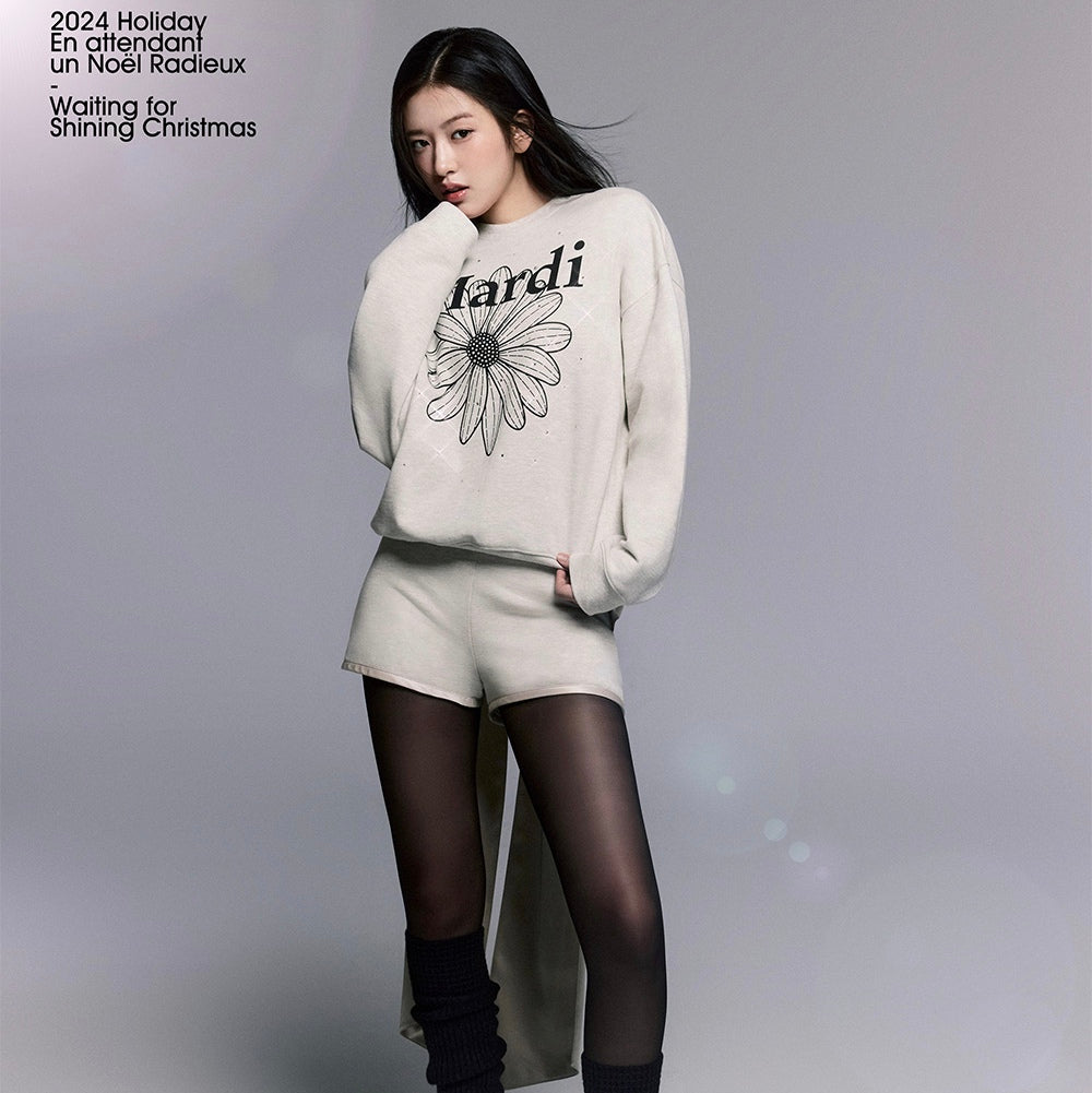 MARDI MERCREDI 2502 SWEATSHIRT FLOWERMARDI STONE EMBELLISHED_OATMEAL BLACK