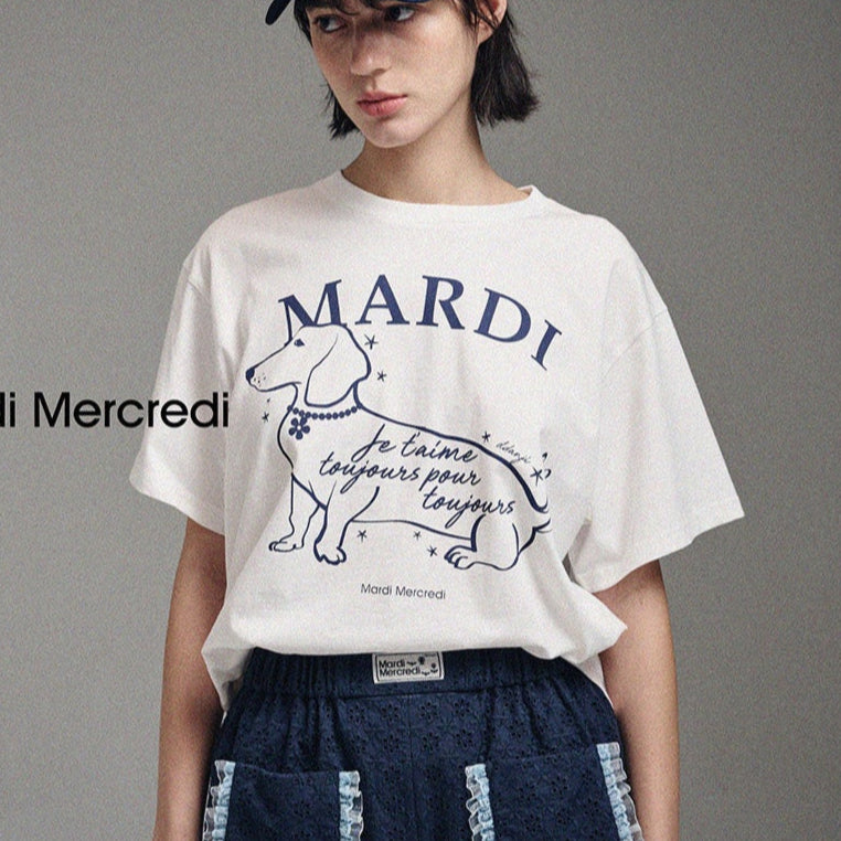 MARDI MERCREDI 2502 TSHIRT SWING THE TAIL DDANJI FLOWER CHOKER_IVORY NAVY