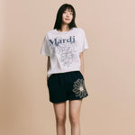 MARDI MERCREDI 2502 小雏菊百合三花短袖t恤 米白