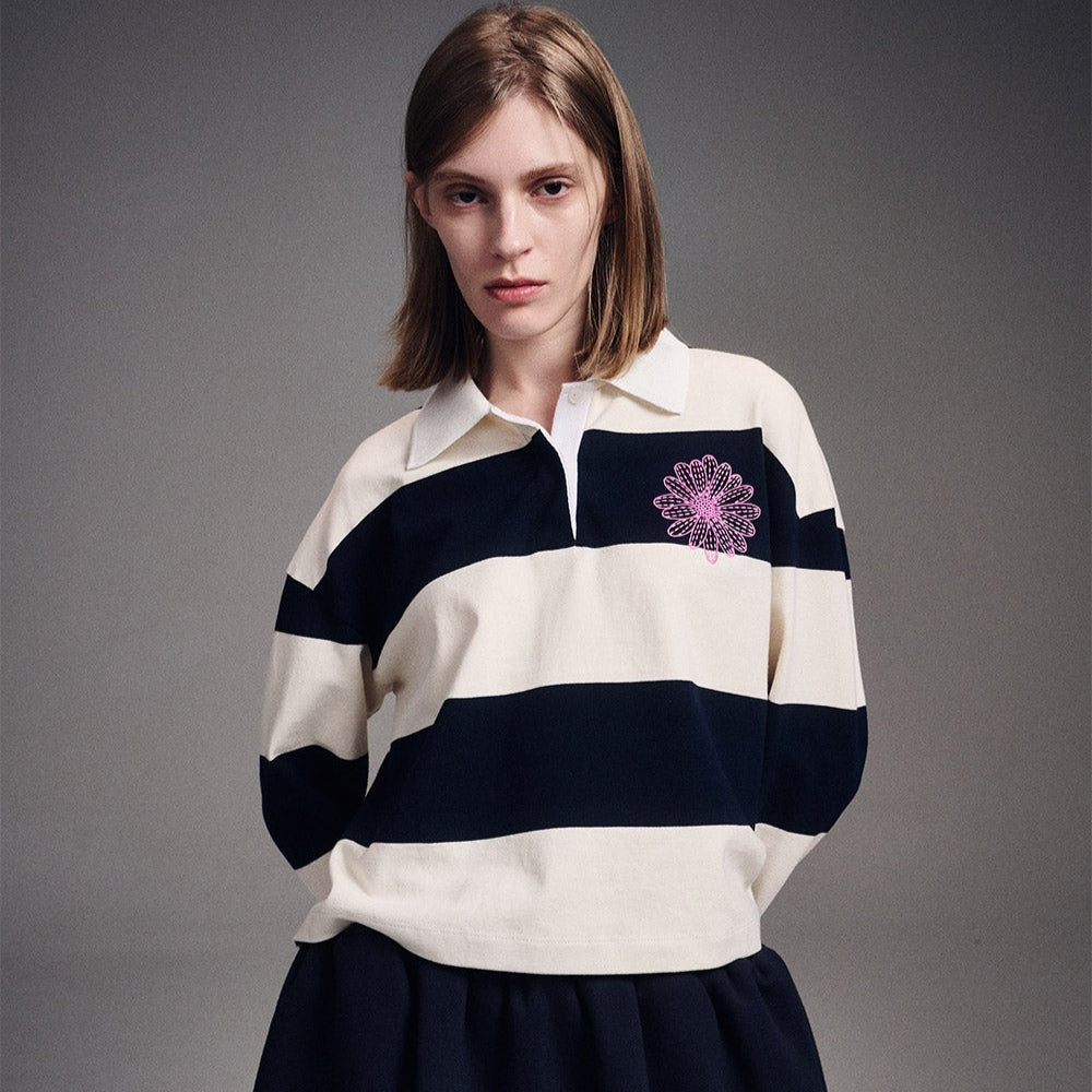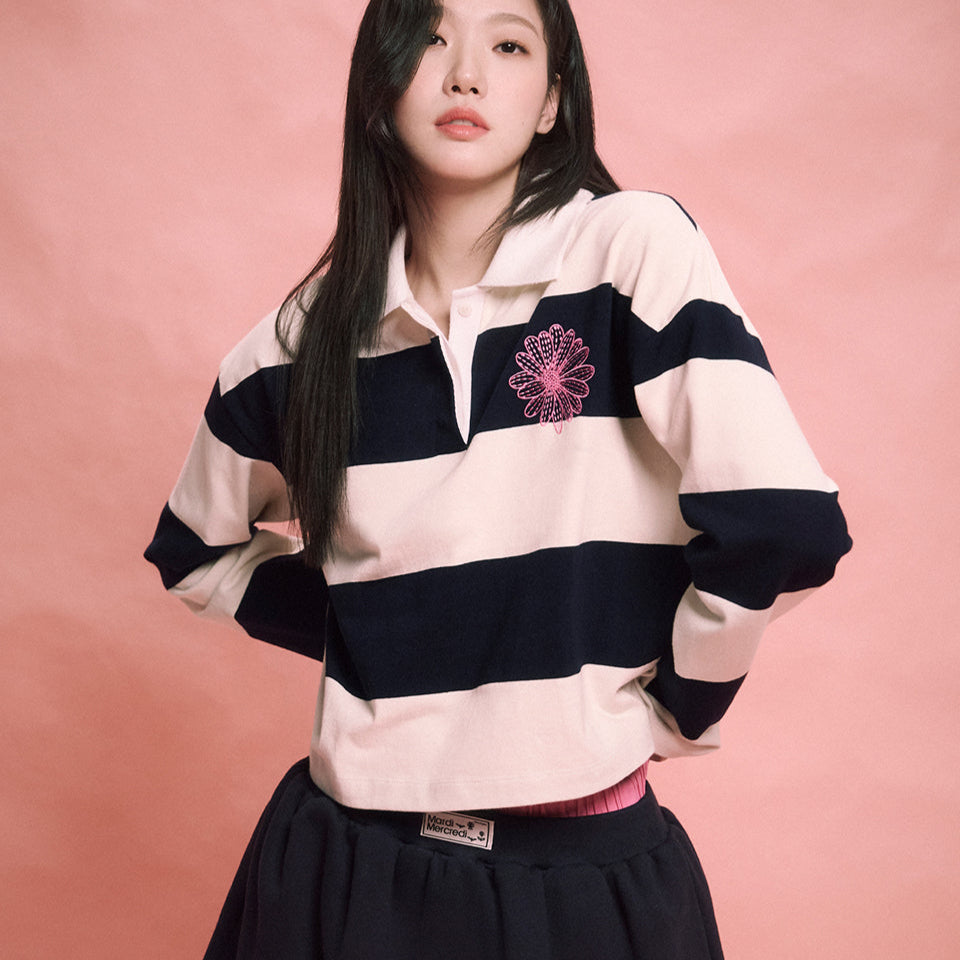 MARDI MERCREDI 2503 RUGBY SHIRT STRIPE FLOWER_IVORY NAVY