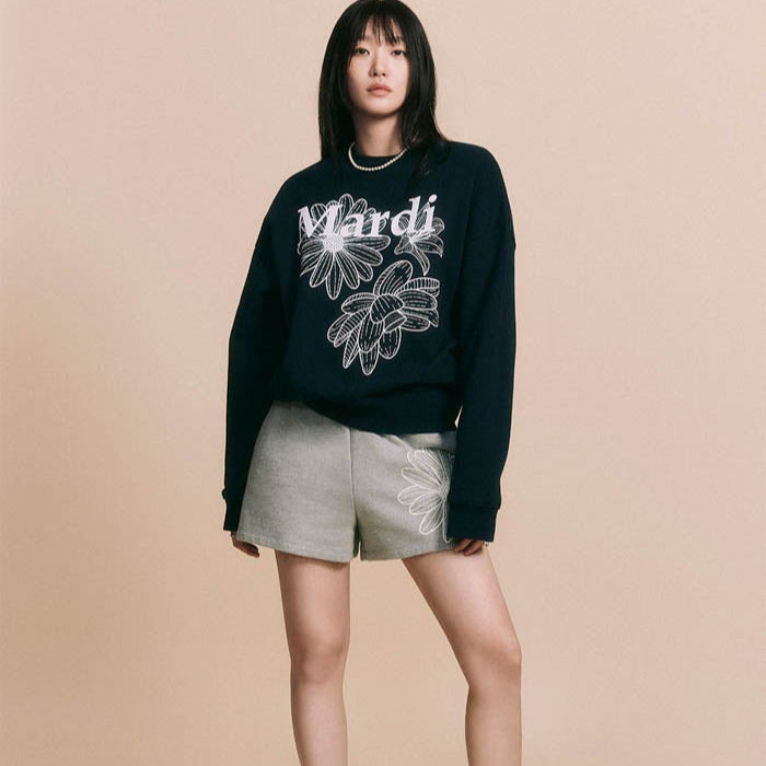 MARDI MERCREDI 2503 SWEAT SHORTS FLOWER_GREY IVORY