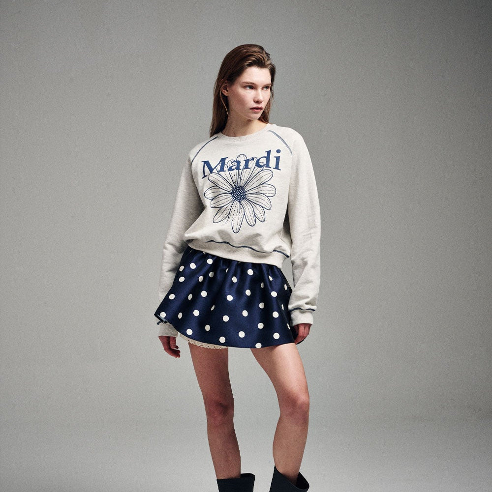 MARDI MERCREDI 2503 SWEATSHIRT RAGLAN FLOWERMARDI_OATMEAL BLUE