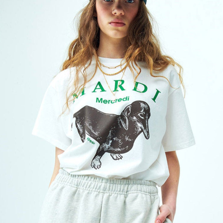 MARDI MERCREDI 2503 经典腊肠狗字母印花短袖