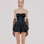 NANA JACQUELINE 蕾丝提花抹胸裙 黑