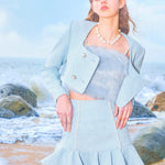 OZLANA SS2303 Elemental Tweed Skirt Set Blue