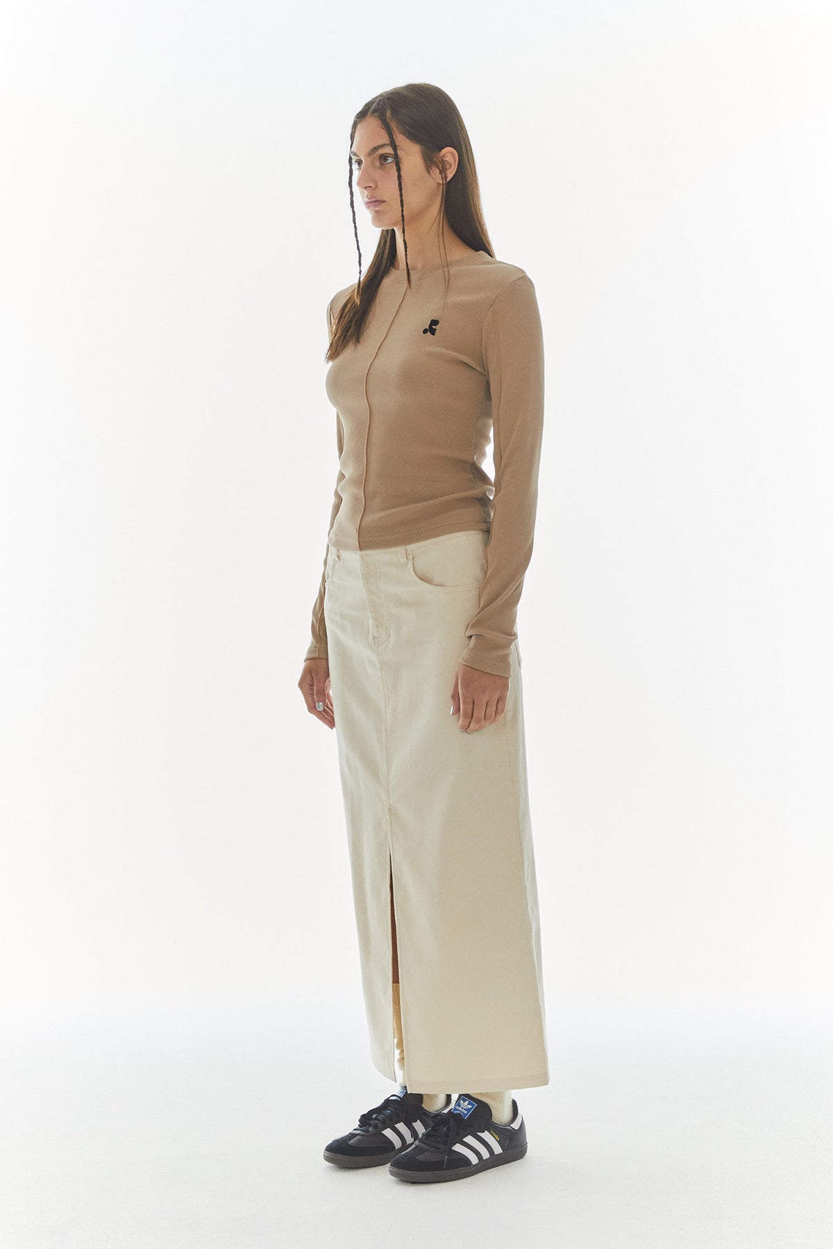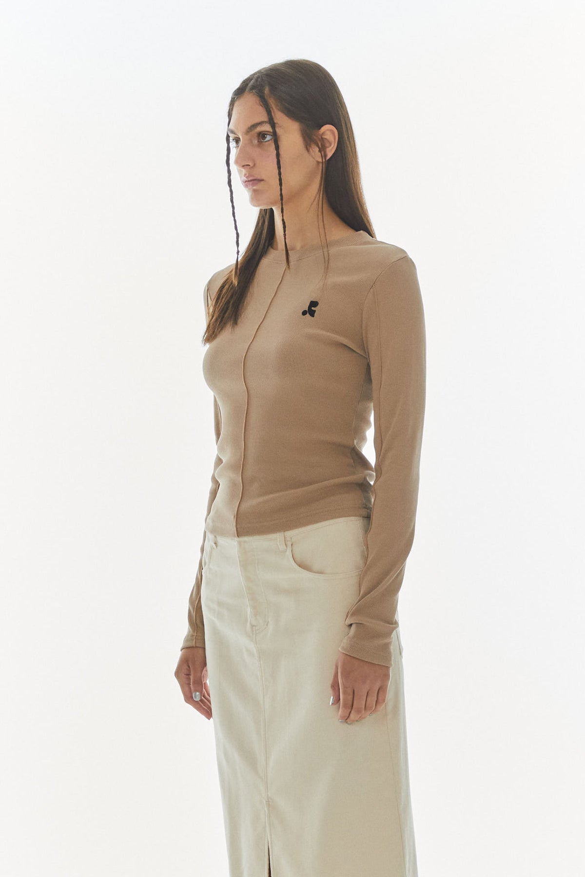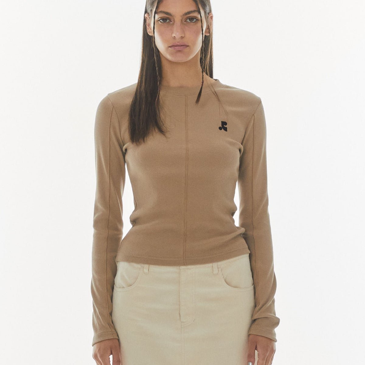 REST & RECREATION 2411 RIB CUTTING TOP - BEIGE