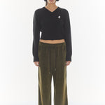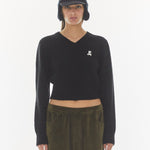 REST & RECREATION 2411 WOOL V-NECK CROPPED KNIT - BLACK