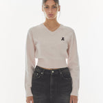 REST & RECREATION 2411 WOOL V-NECK CROPPED KNIT - PINK
