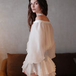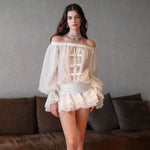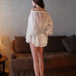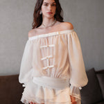 SHEER LUCK 2502 一字肩泡泡袖抹胸蓬蓬裤裙 珍珠白