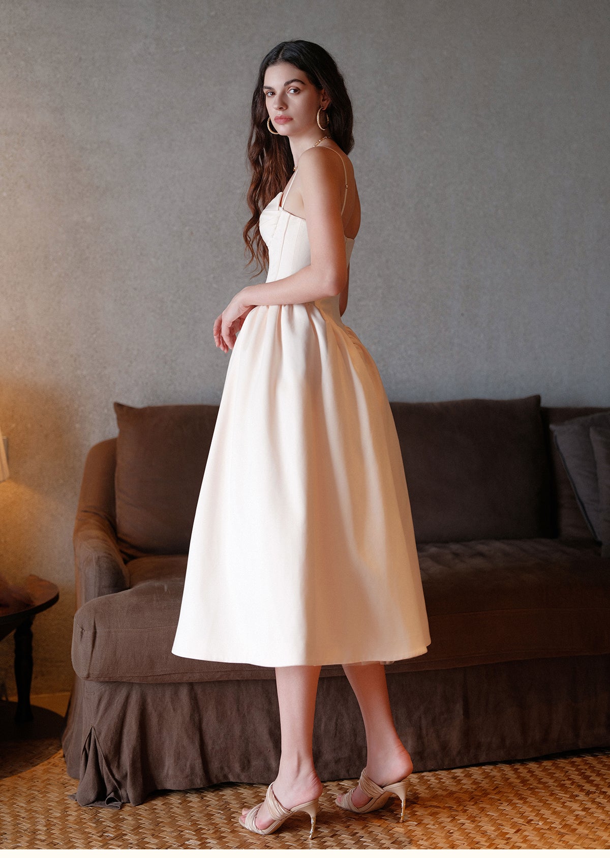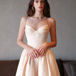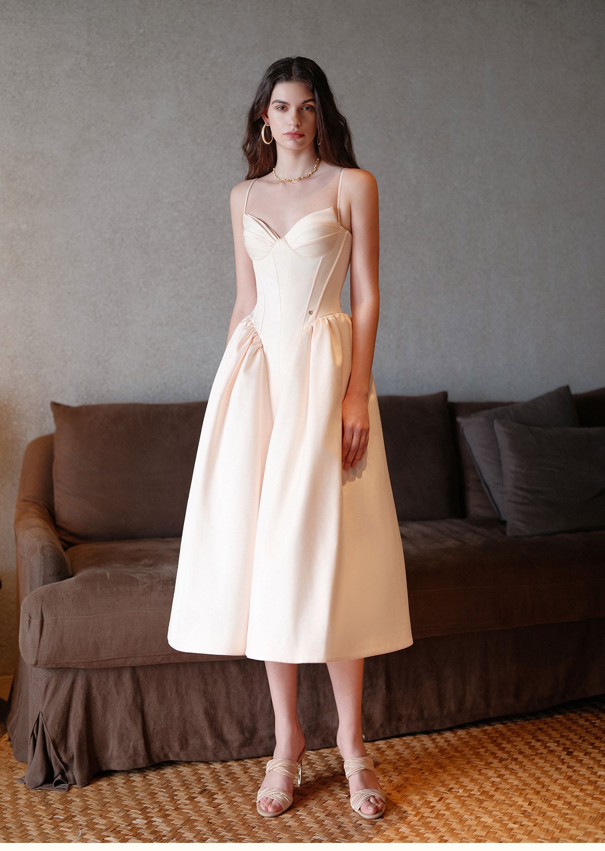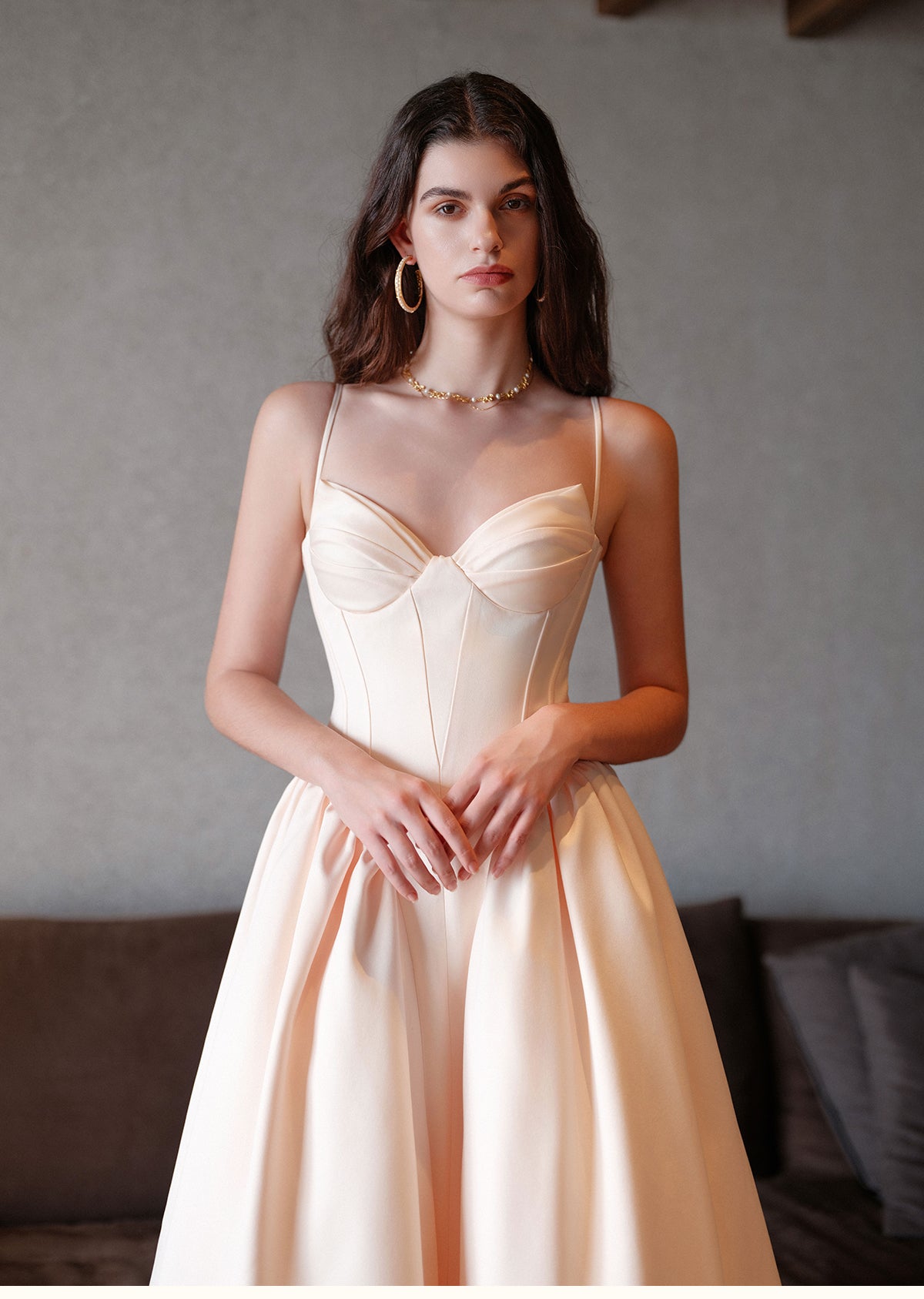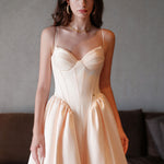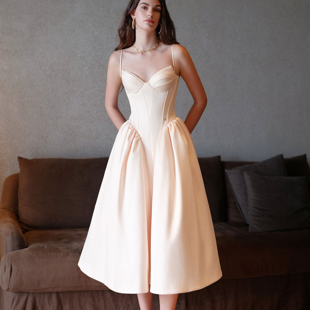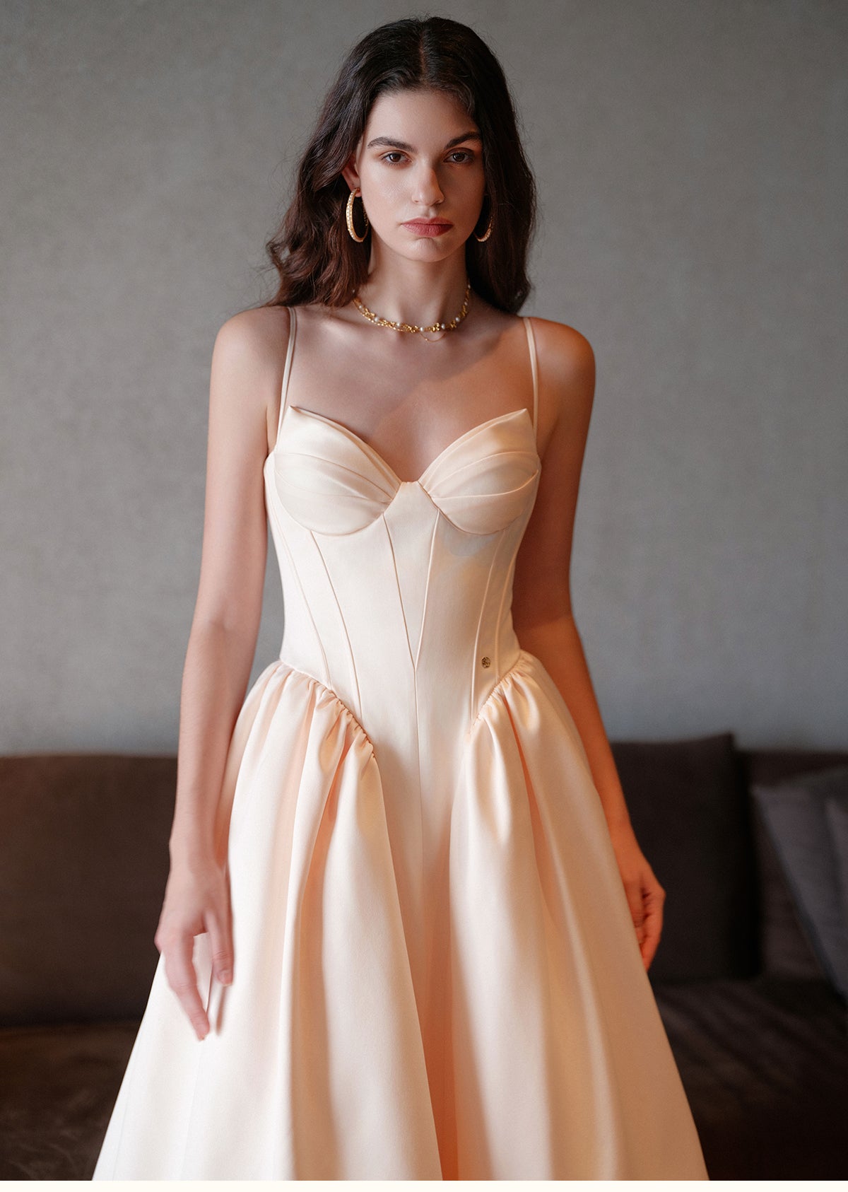 SHEER LUCK 2502 立体裁剪法式性感芭蕾缎面吊带裙 奶油杏