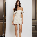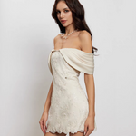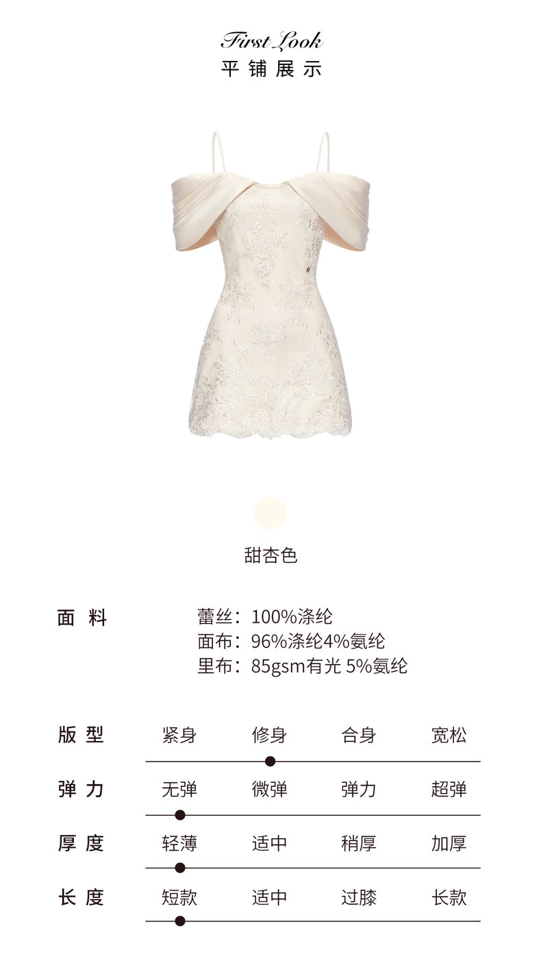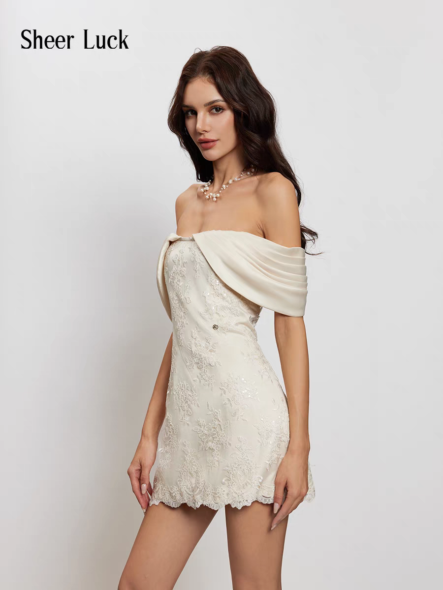 SHEER LUCK 2503 一字肩蕾丝缎面连衣裙