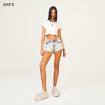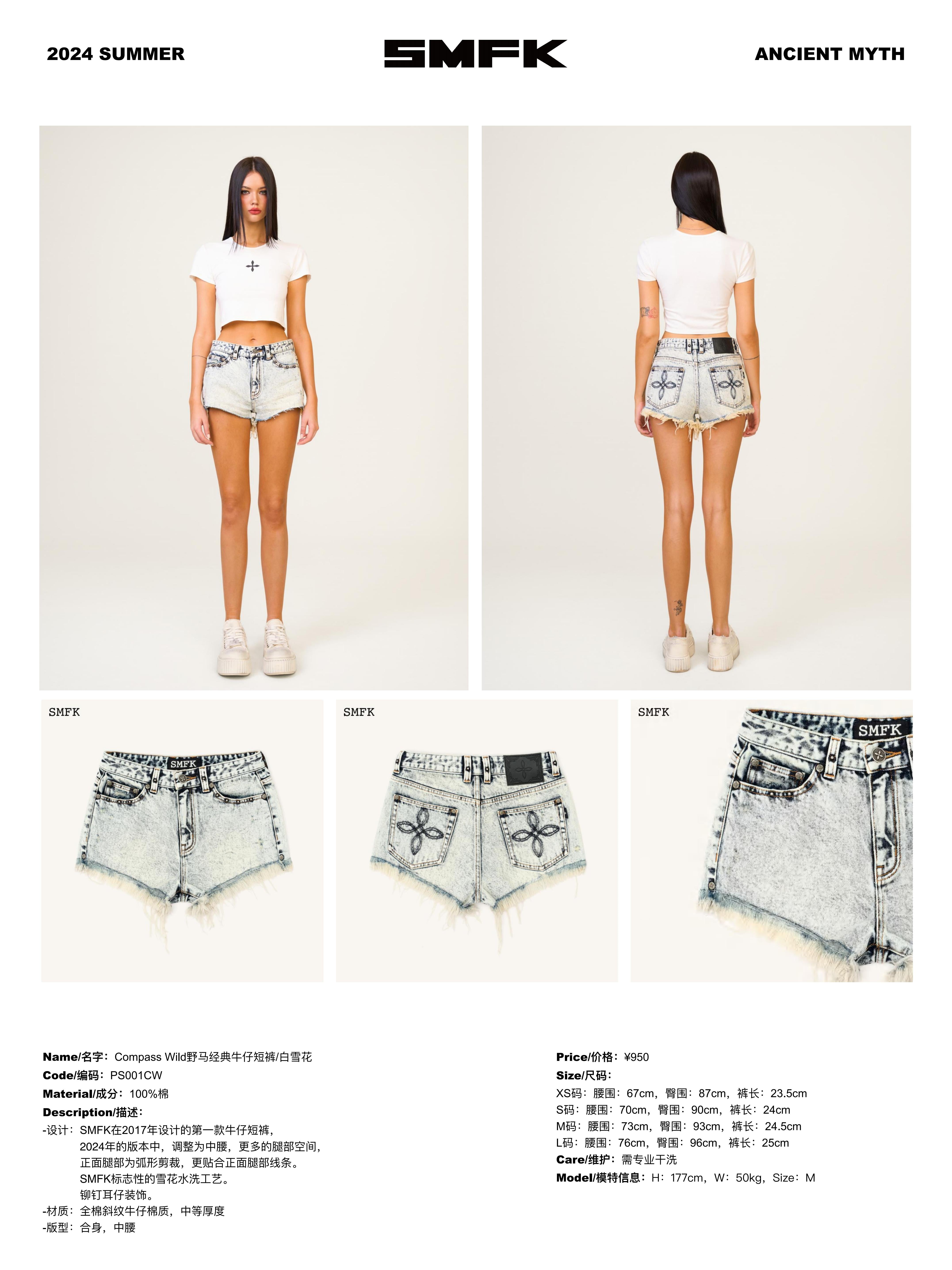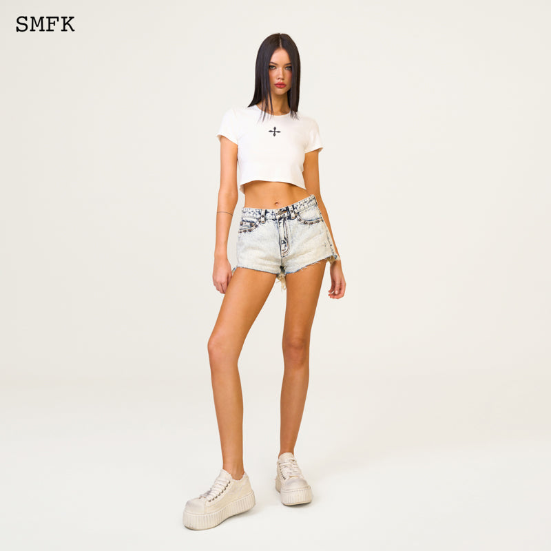 SMFK 2406 野马经典牛仔短裤 白雪花