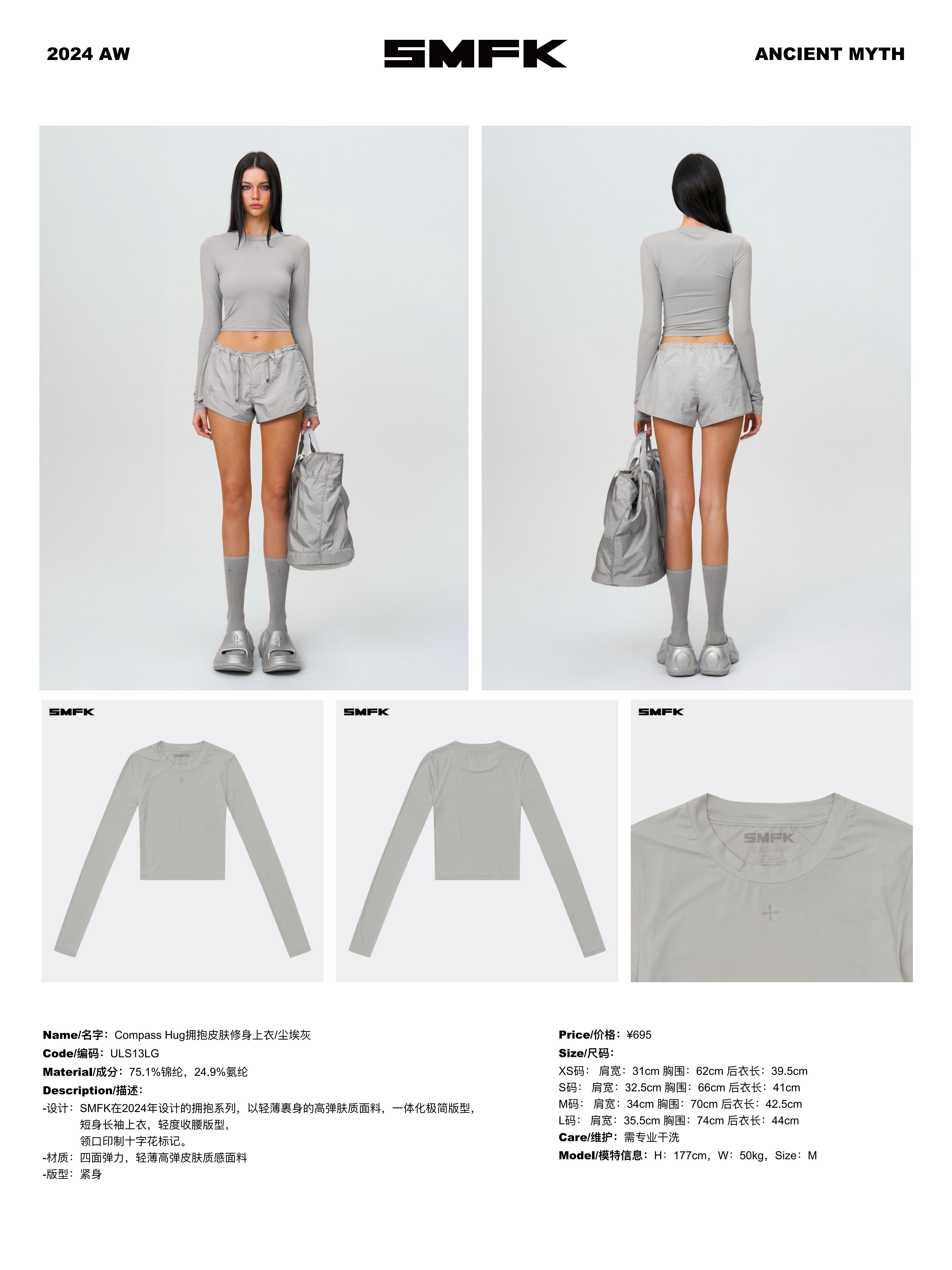 SMFK 2408 拥抱皮肤修身上衣 尘埃灰
