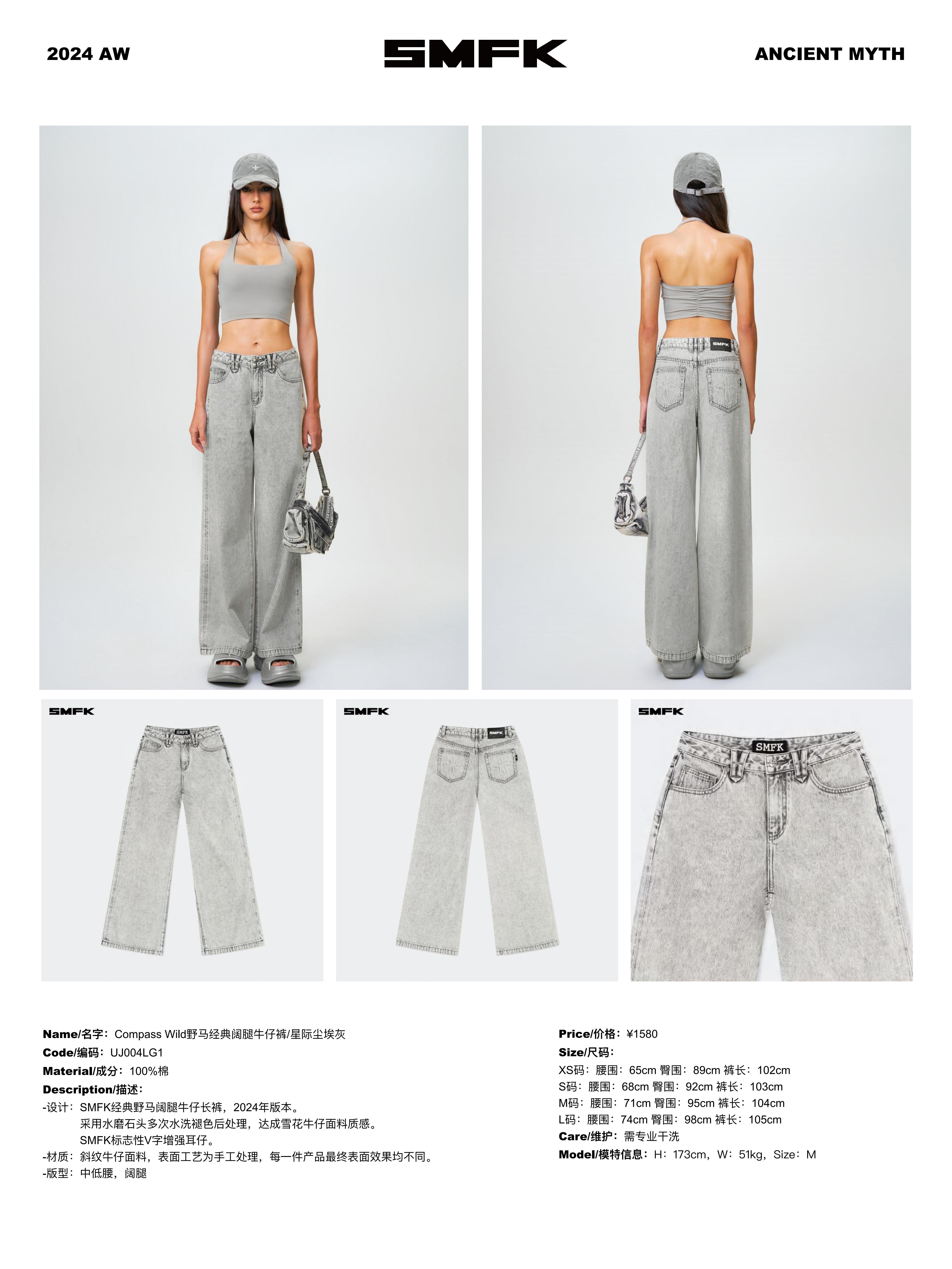 SMFK 2408 野马经典阔腿牛仔裤 星际尘埃灰