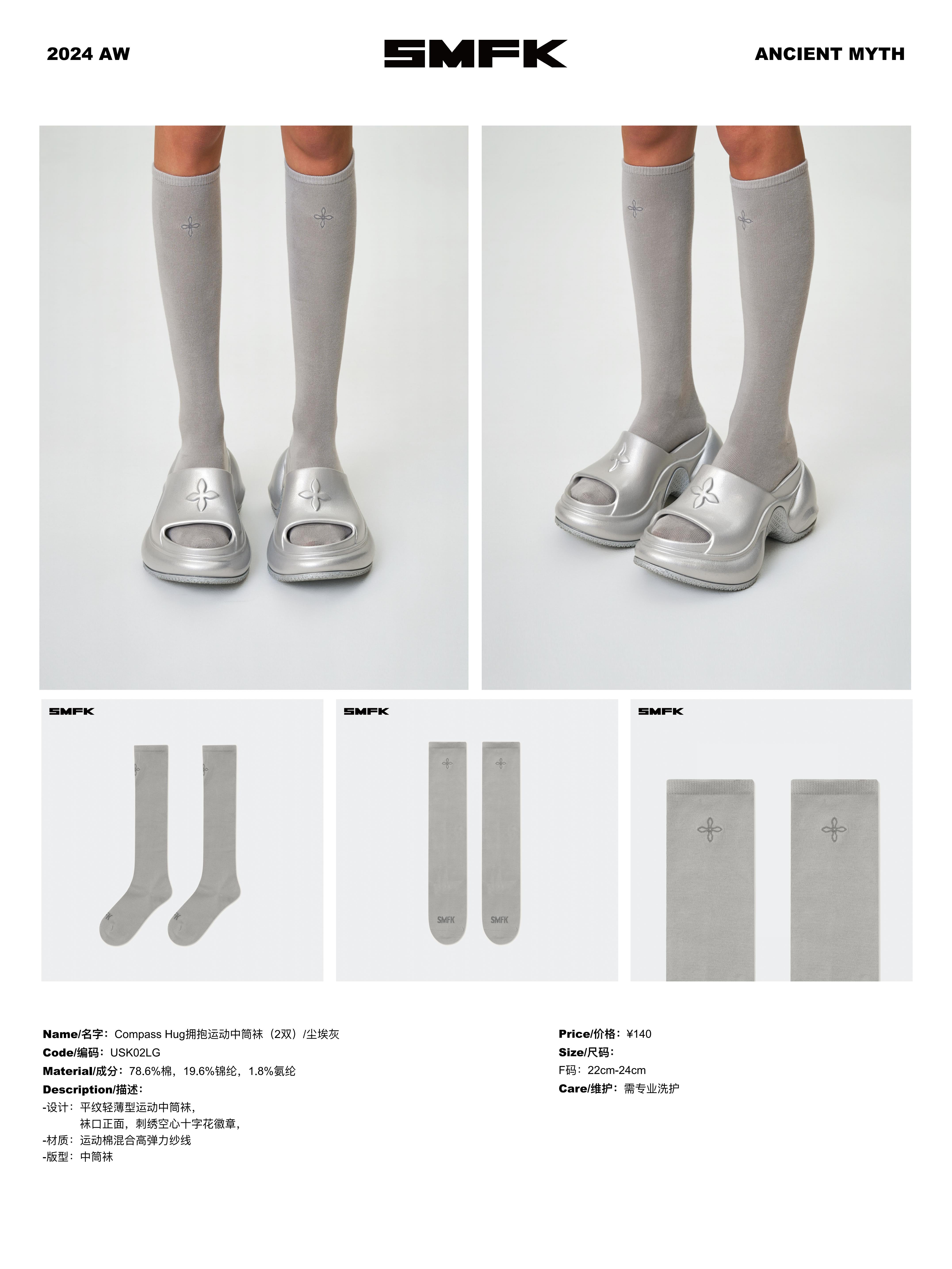 SMFK 2409 拥抱运动中筒袜(2双) 尘埃灰