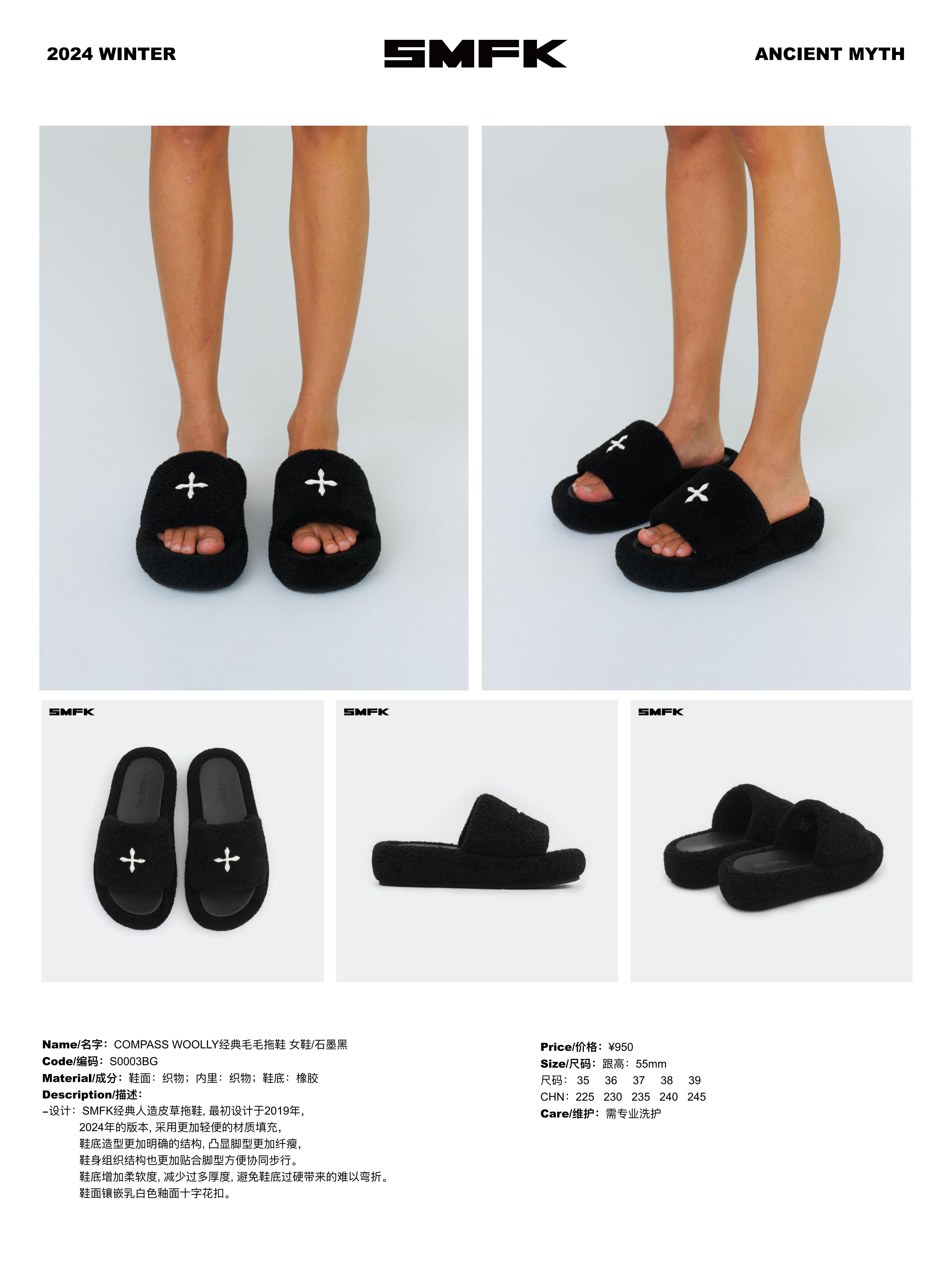 SMFK 2410 经典毛毛拖鞋女鞋/石墨黑