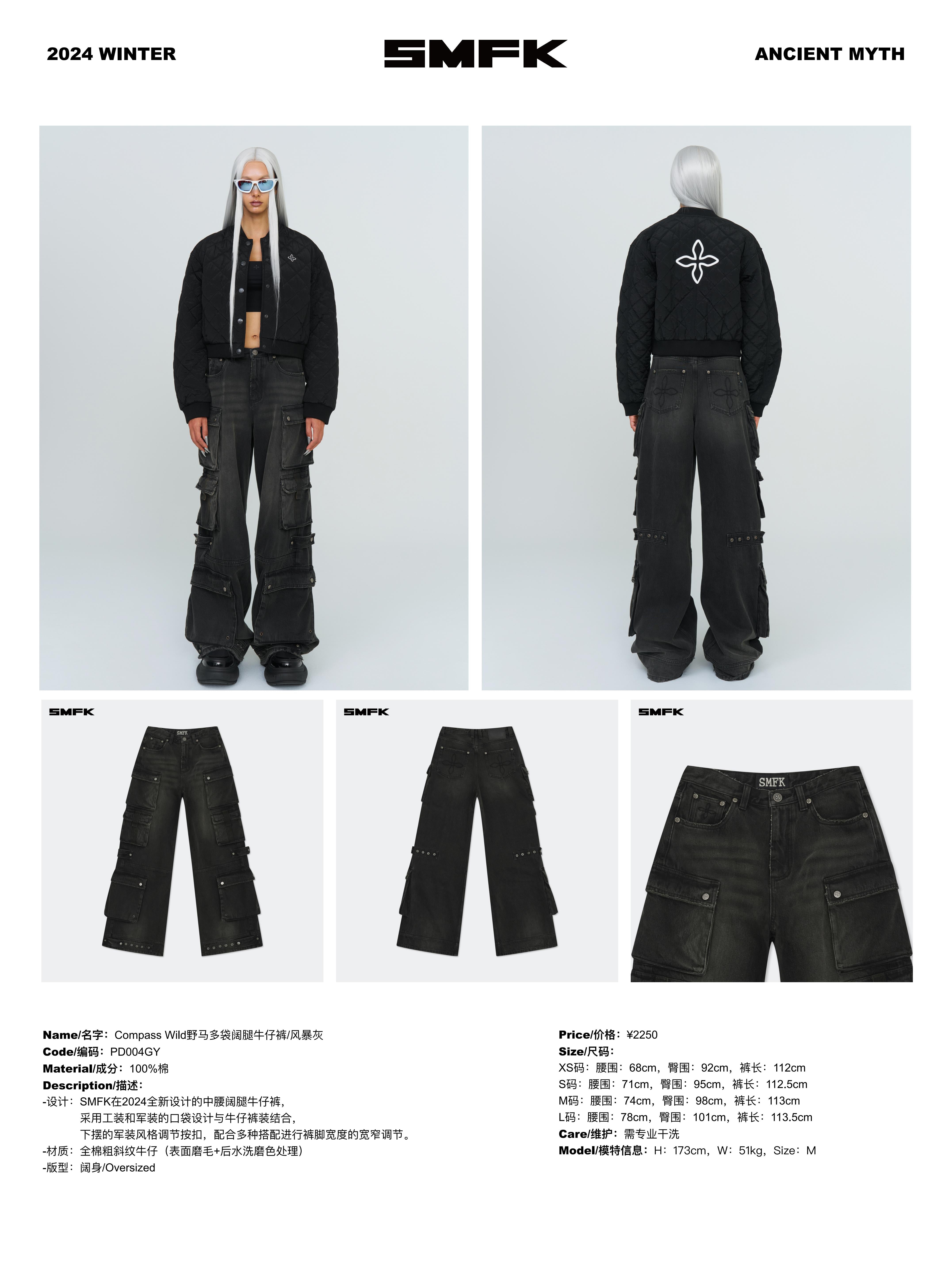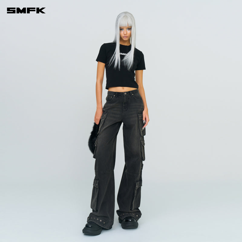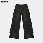 SMFK 2410 野马多袋阔腿牛仔裤/风暴灰