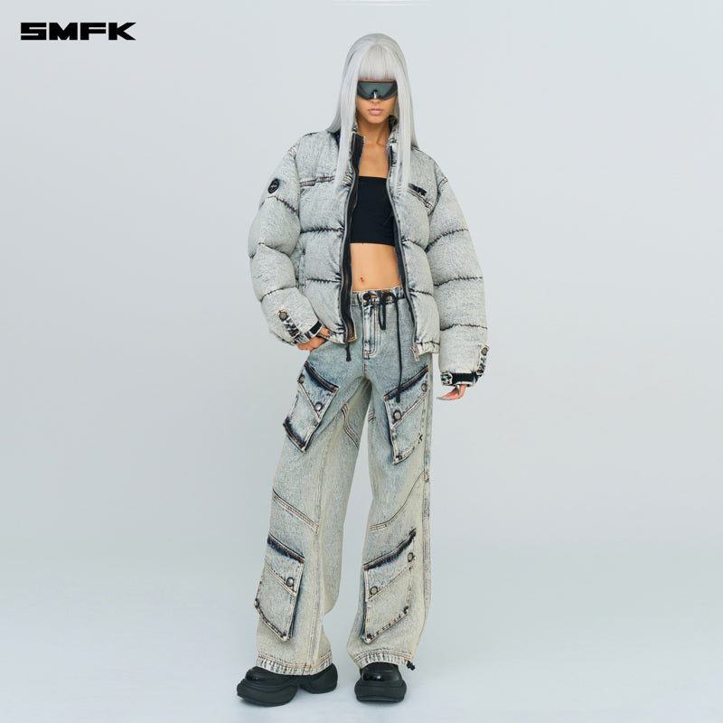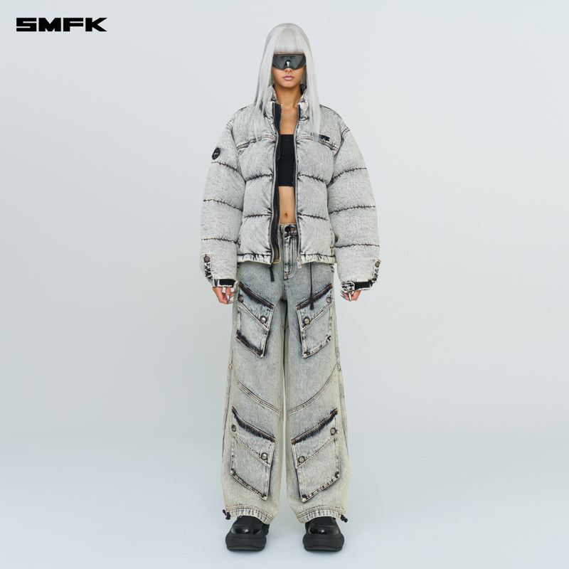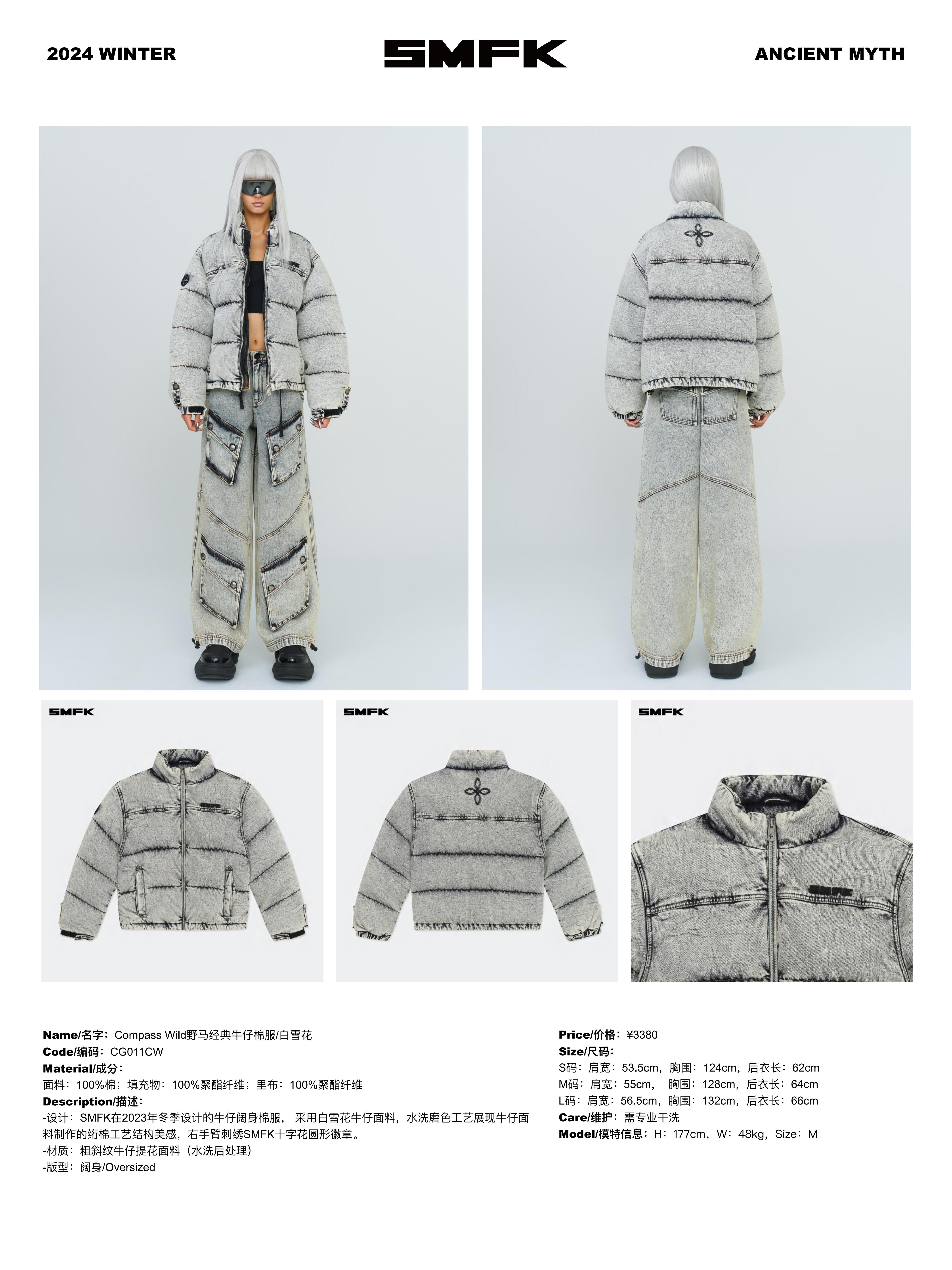 SMFK 2410 野马经典牛仔棉服/白雪花