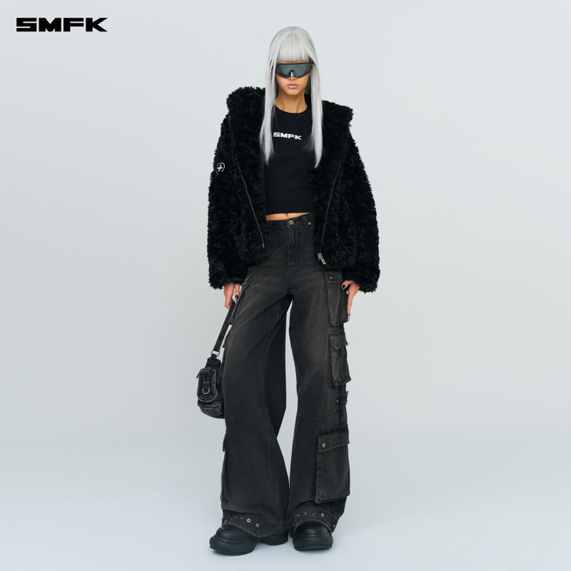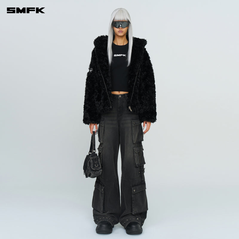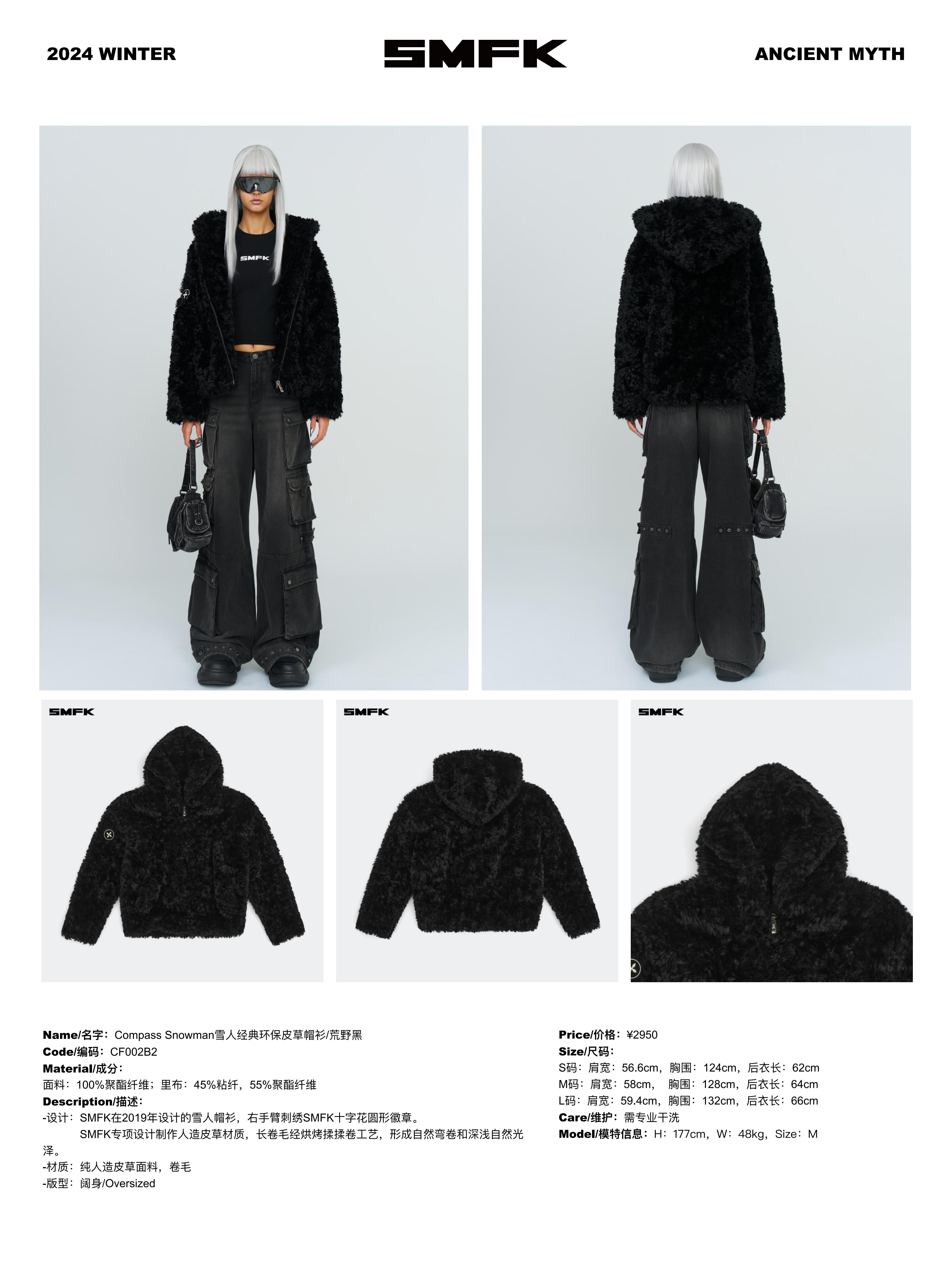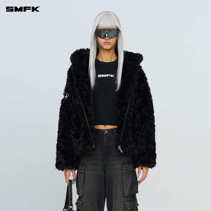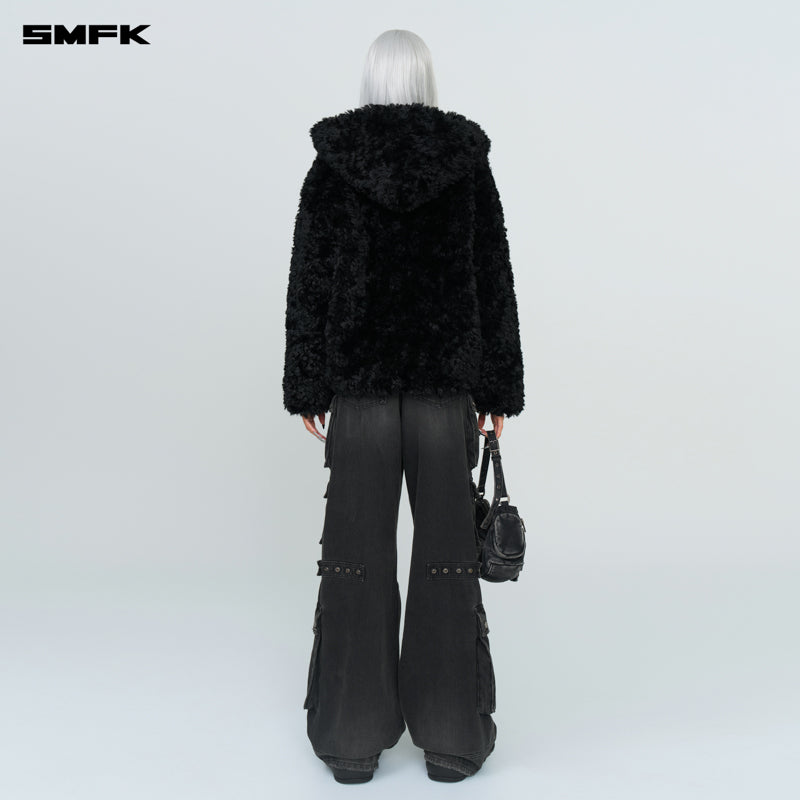 SMFK 2410 雪人经典环保皮草帽衫/荒野黑