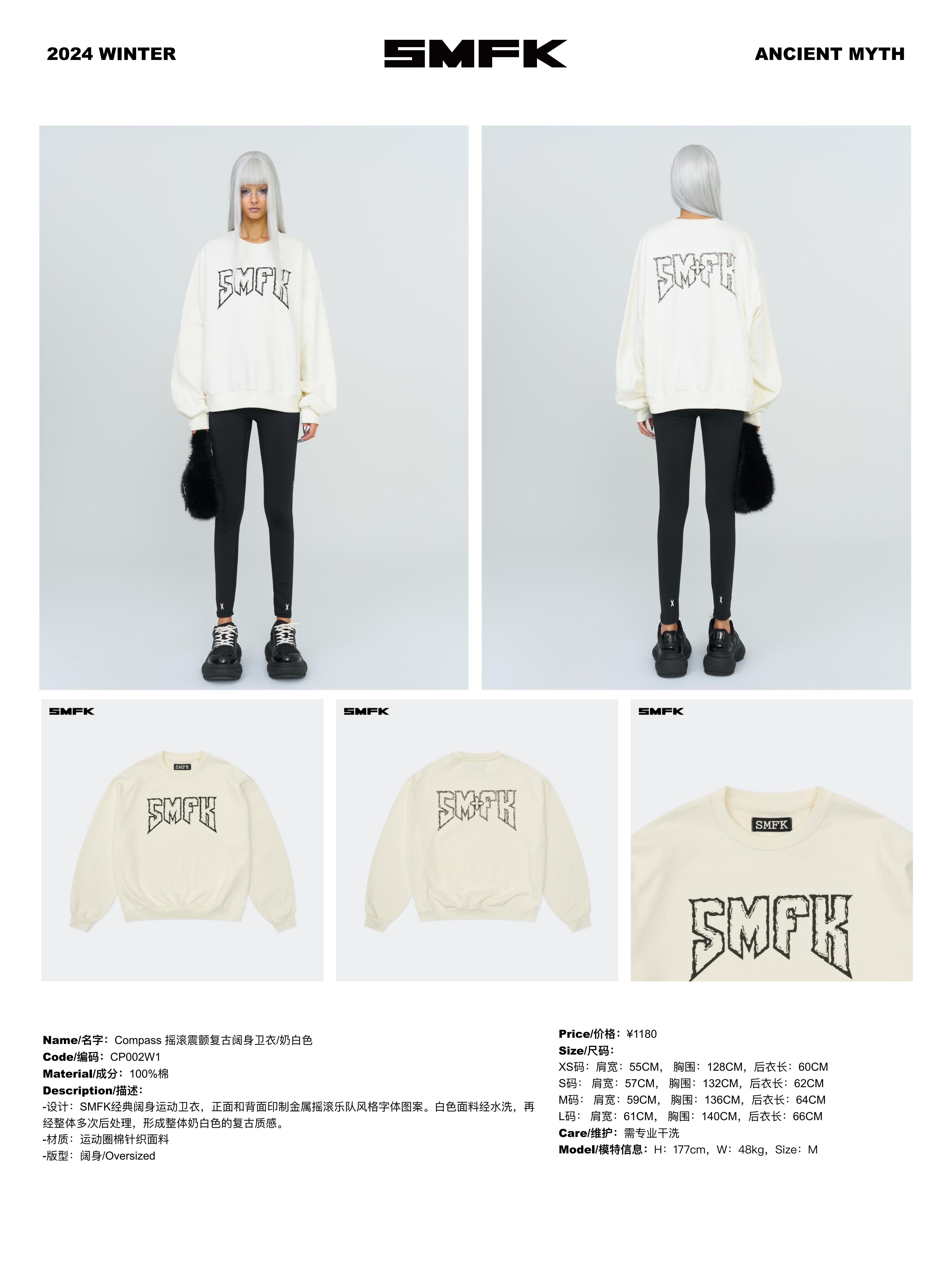 SMFK 2410 摇滚震颤复古阔身卫衣/奶白色