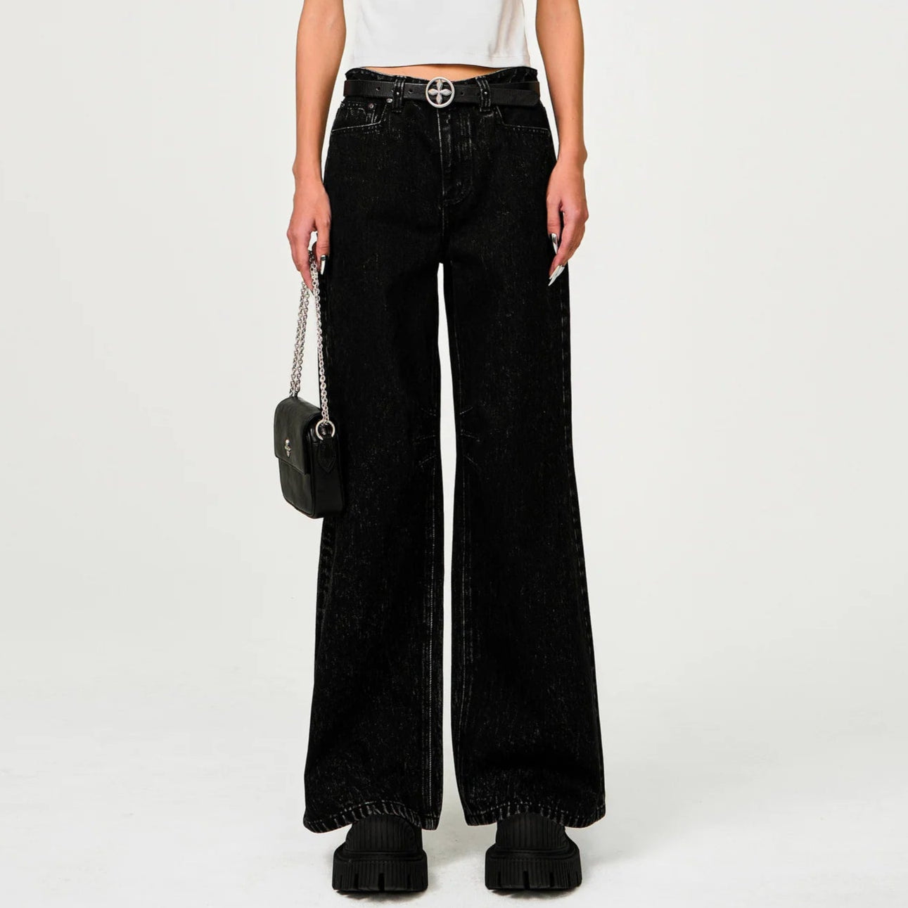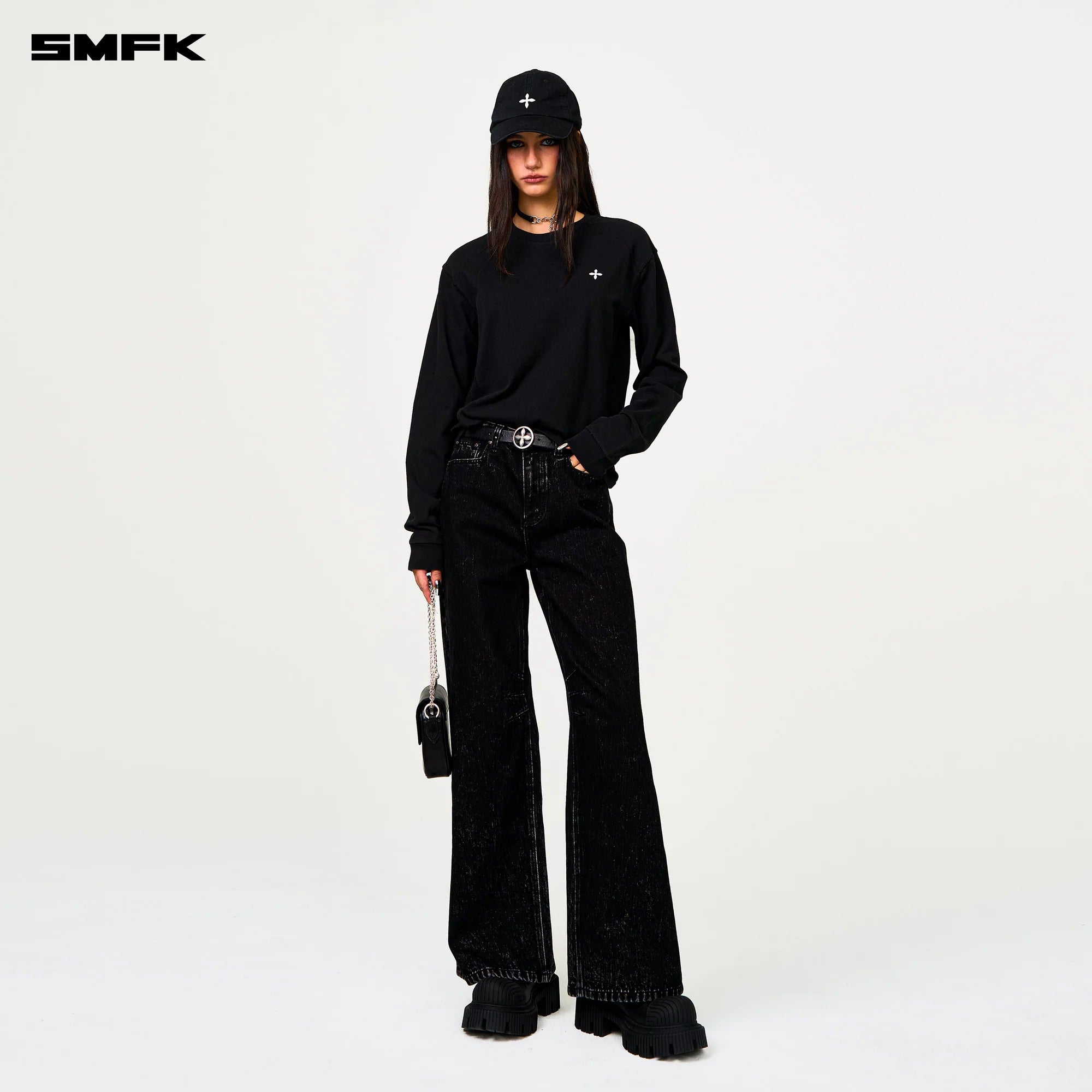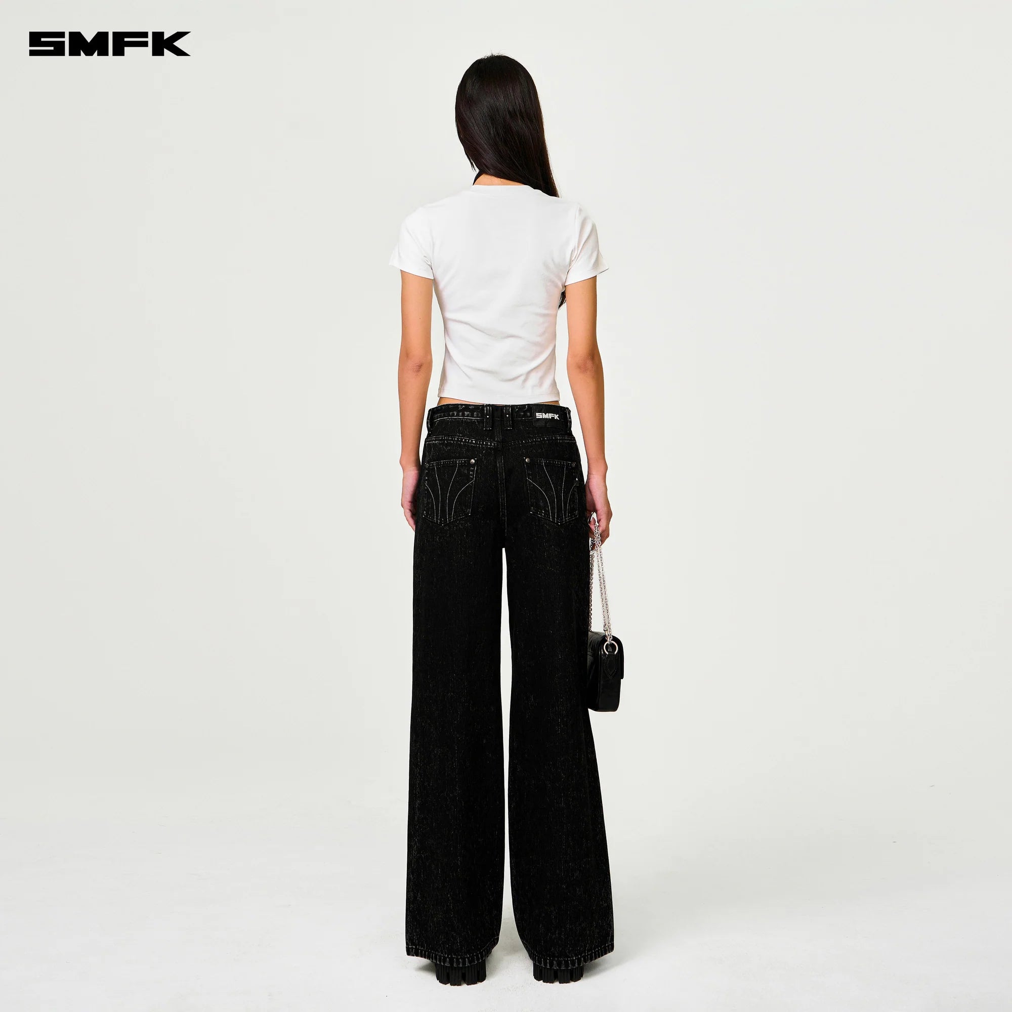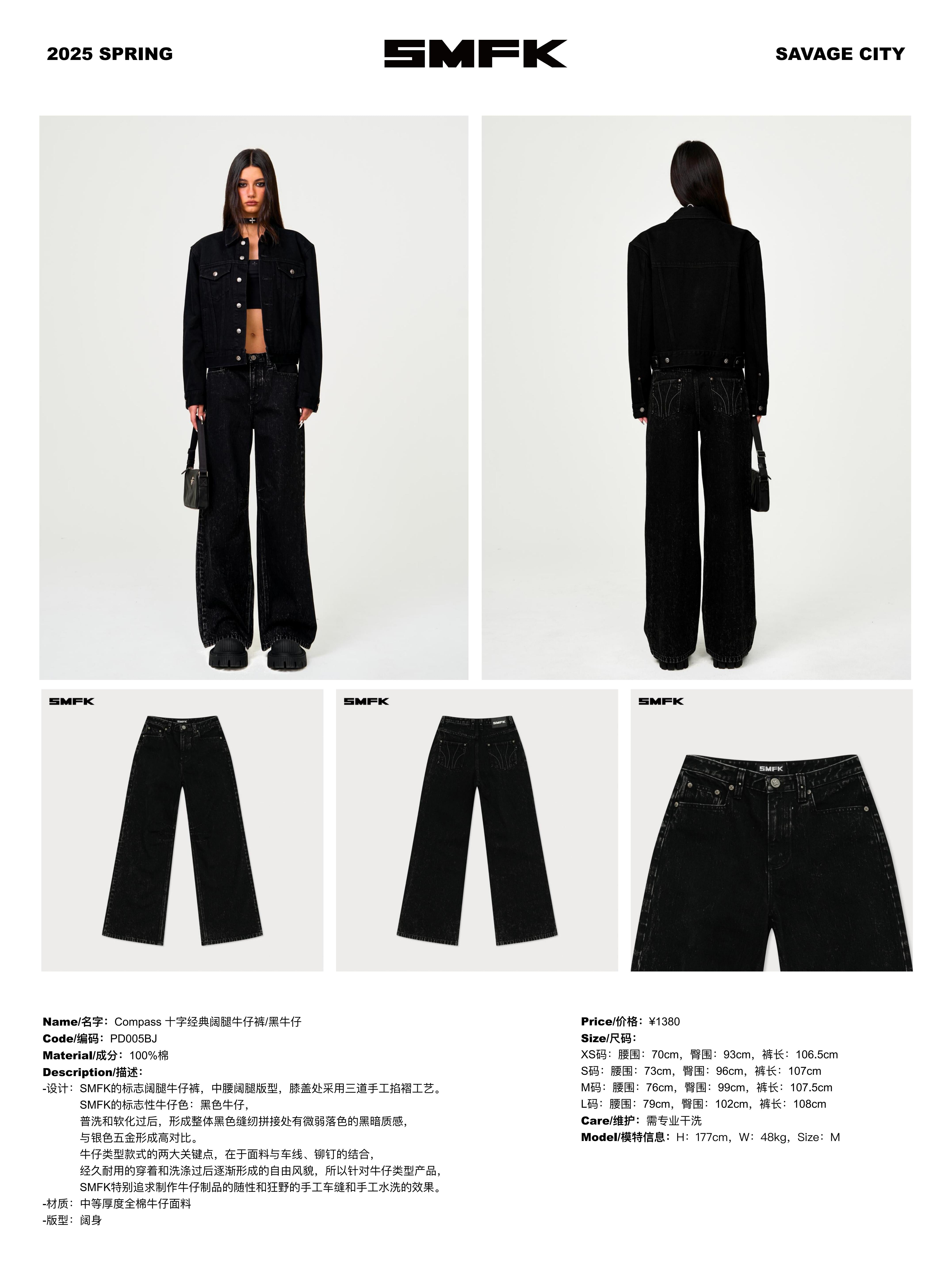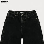 SMFK 2501 十字经典阔腿牛仔裤/黑牛仔