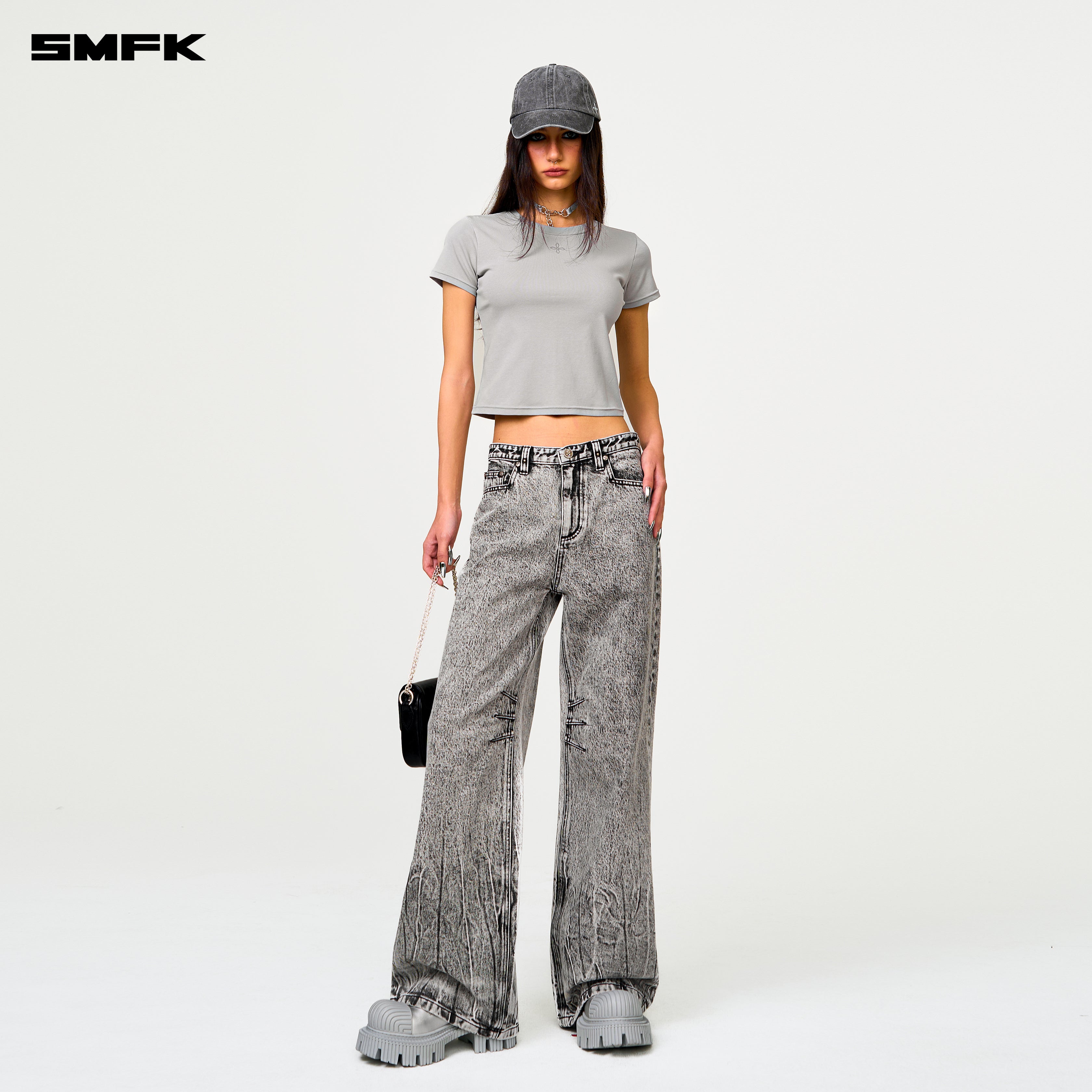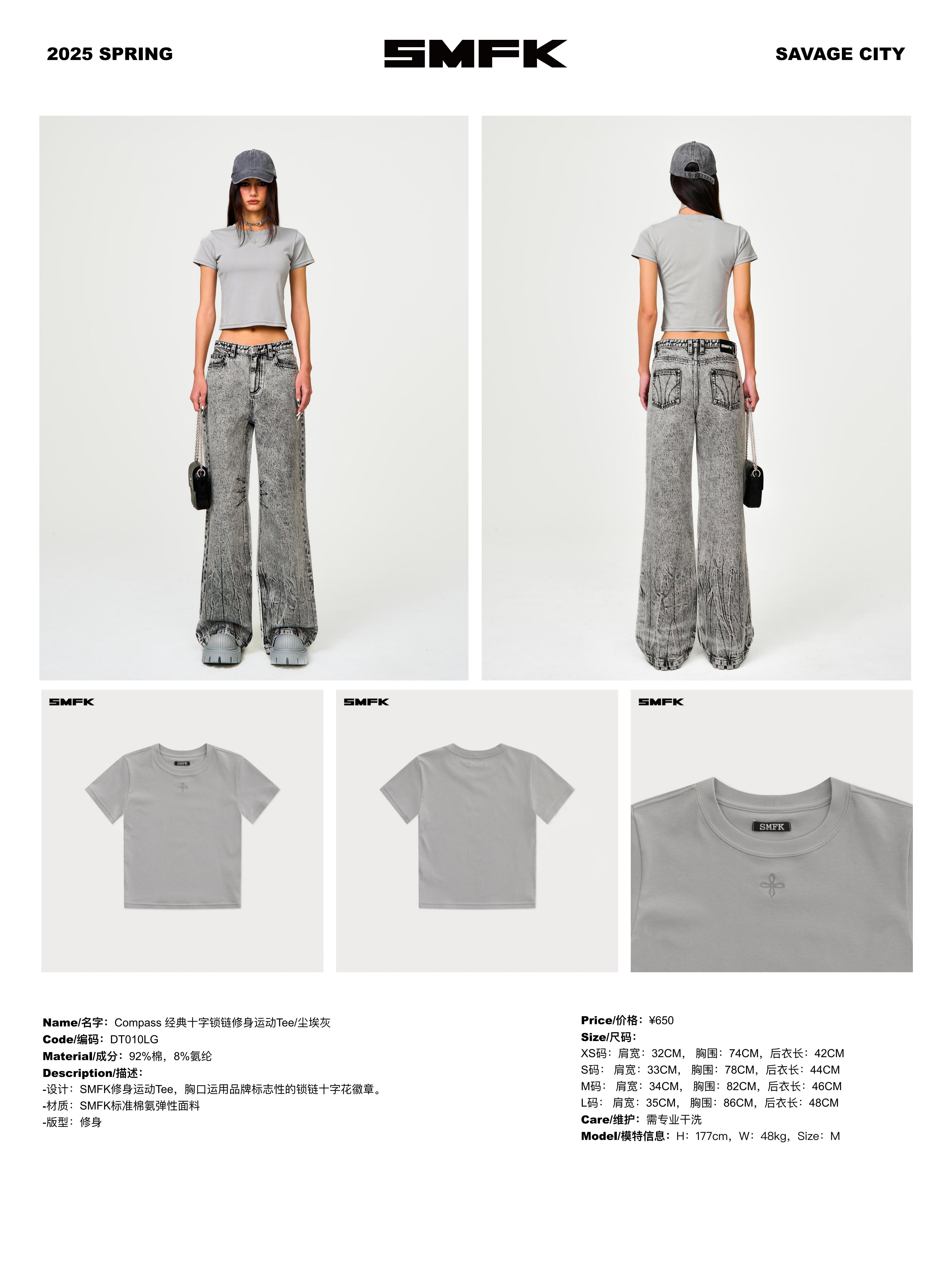 SMFK 2501 经典十字锁链修身运动Tee 尘埃灰