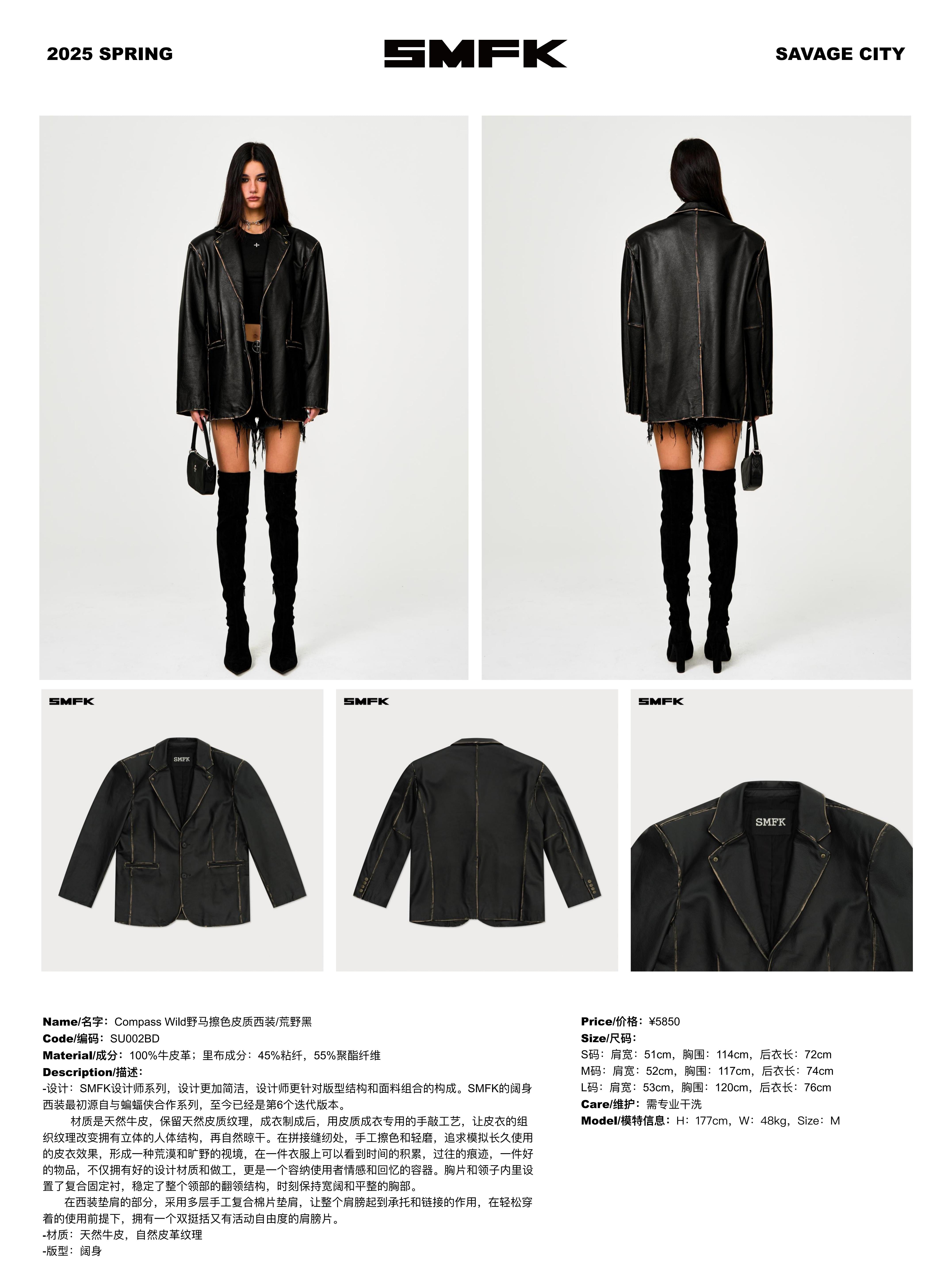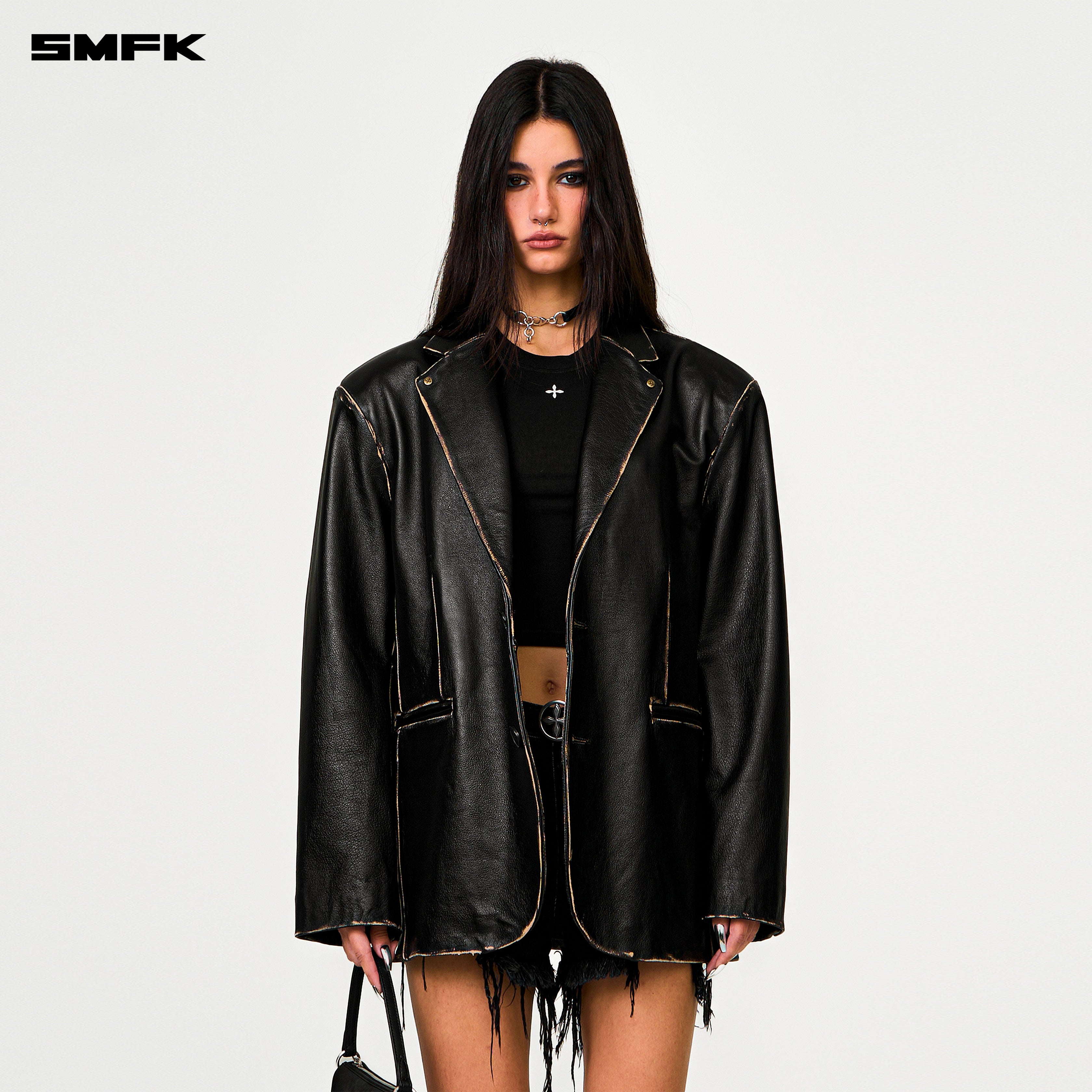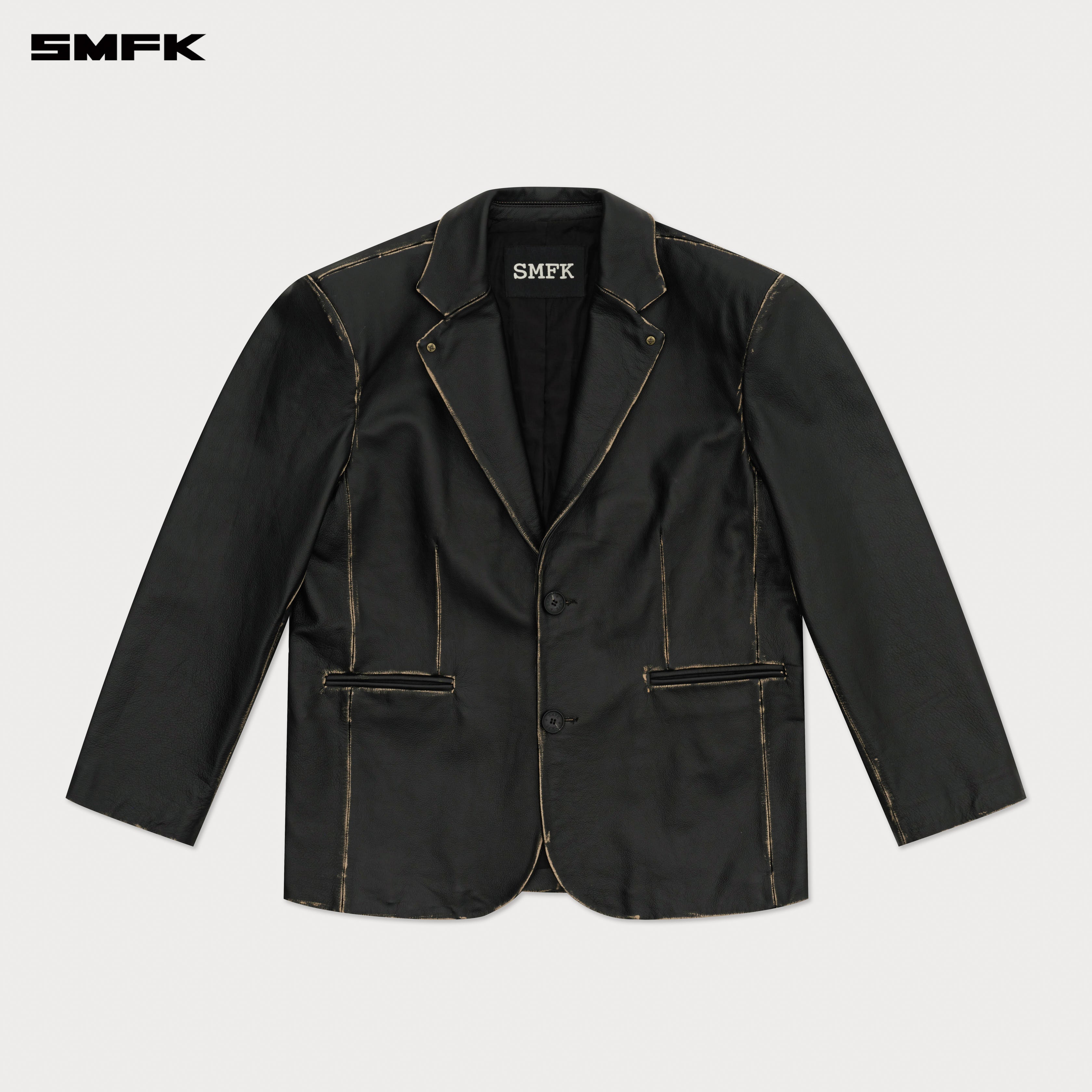 SMFK 2501 野马擦色皮质西装 荒野黑