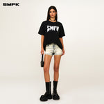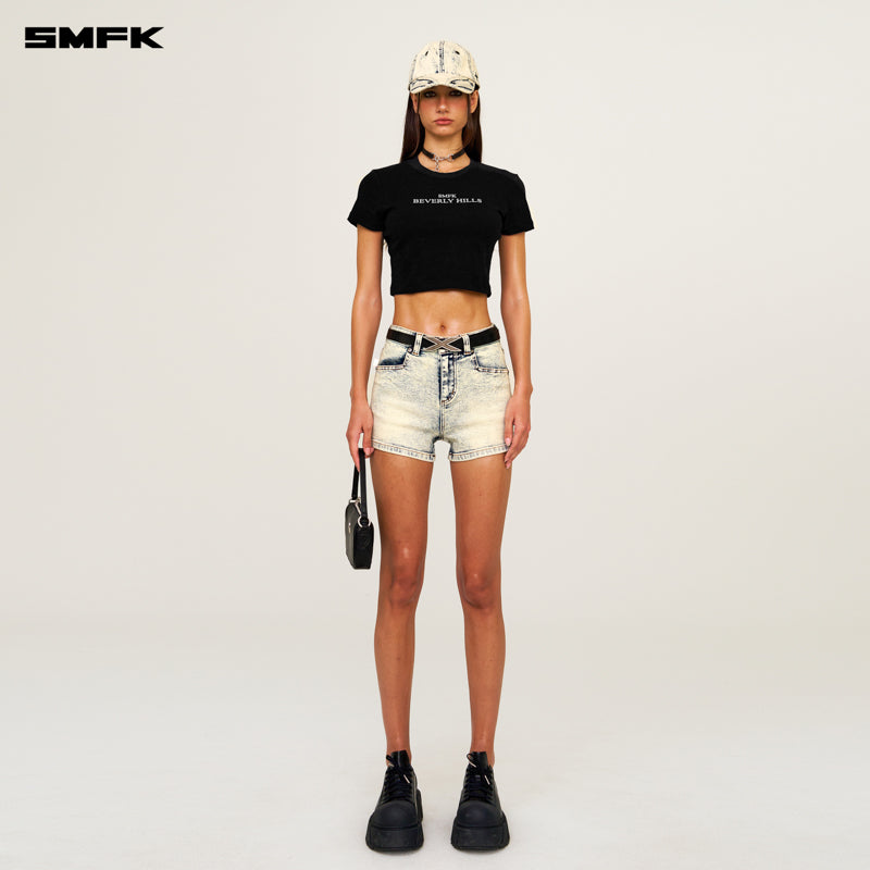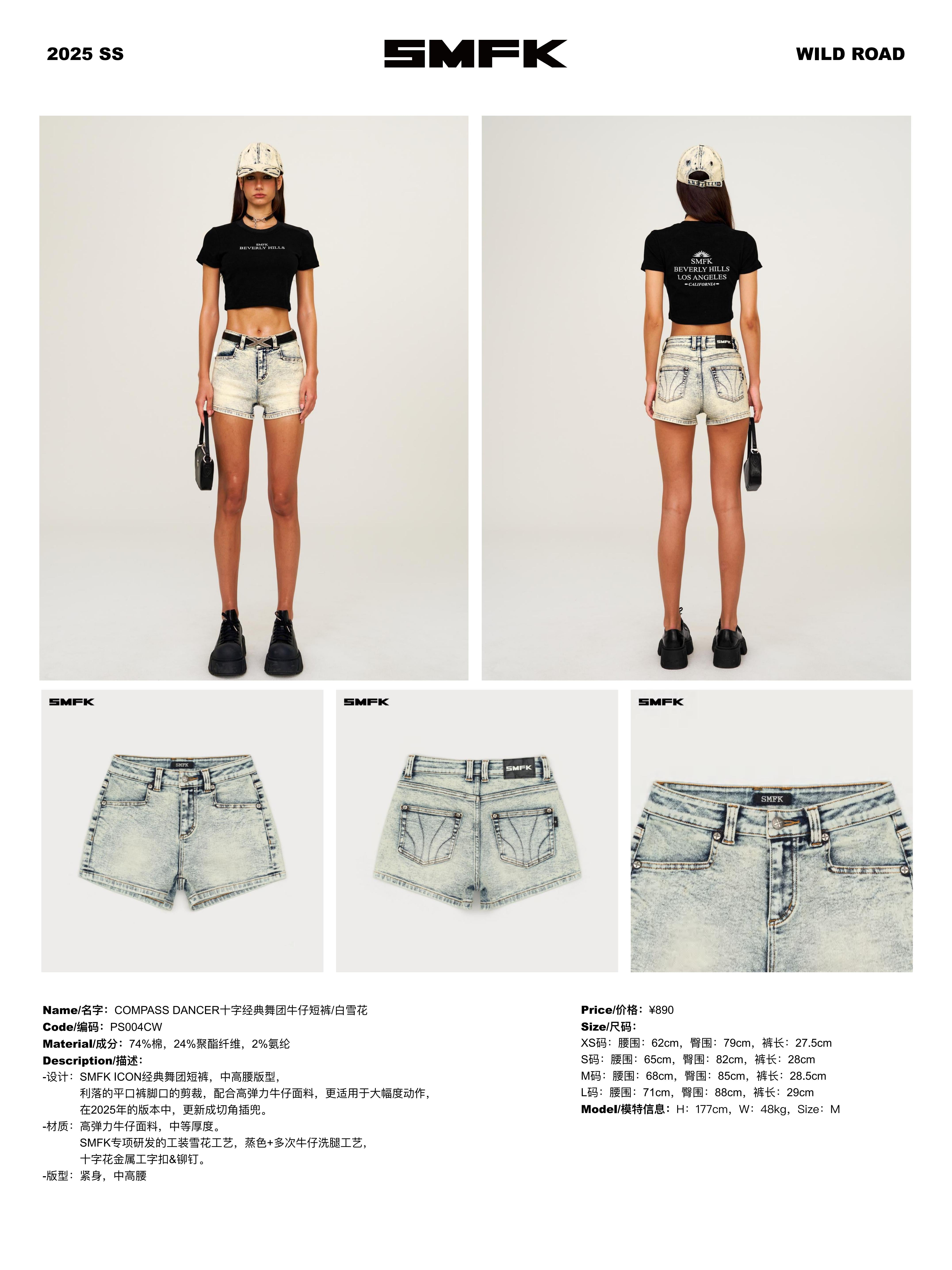 SMFK 2503 十字经典舞团牛仔短裤/白雪花