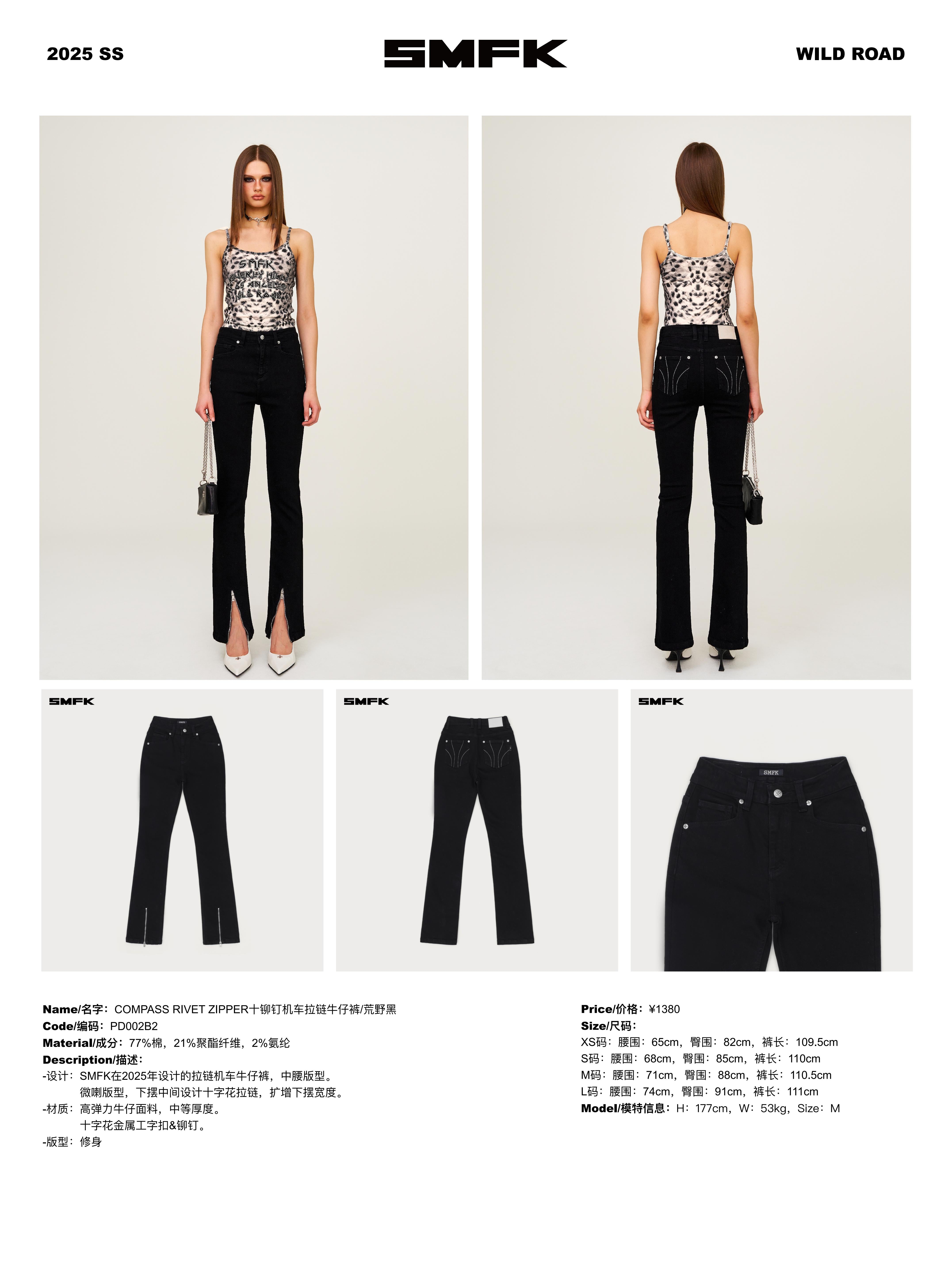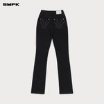 SMFK 2504 十铆钉机车拉链牛仔裤/荒野黑