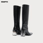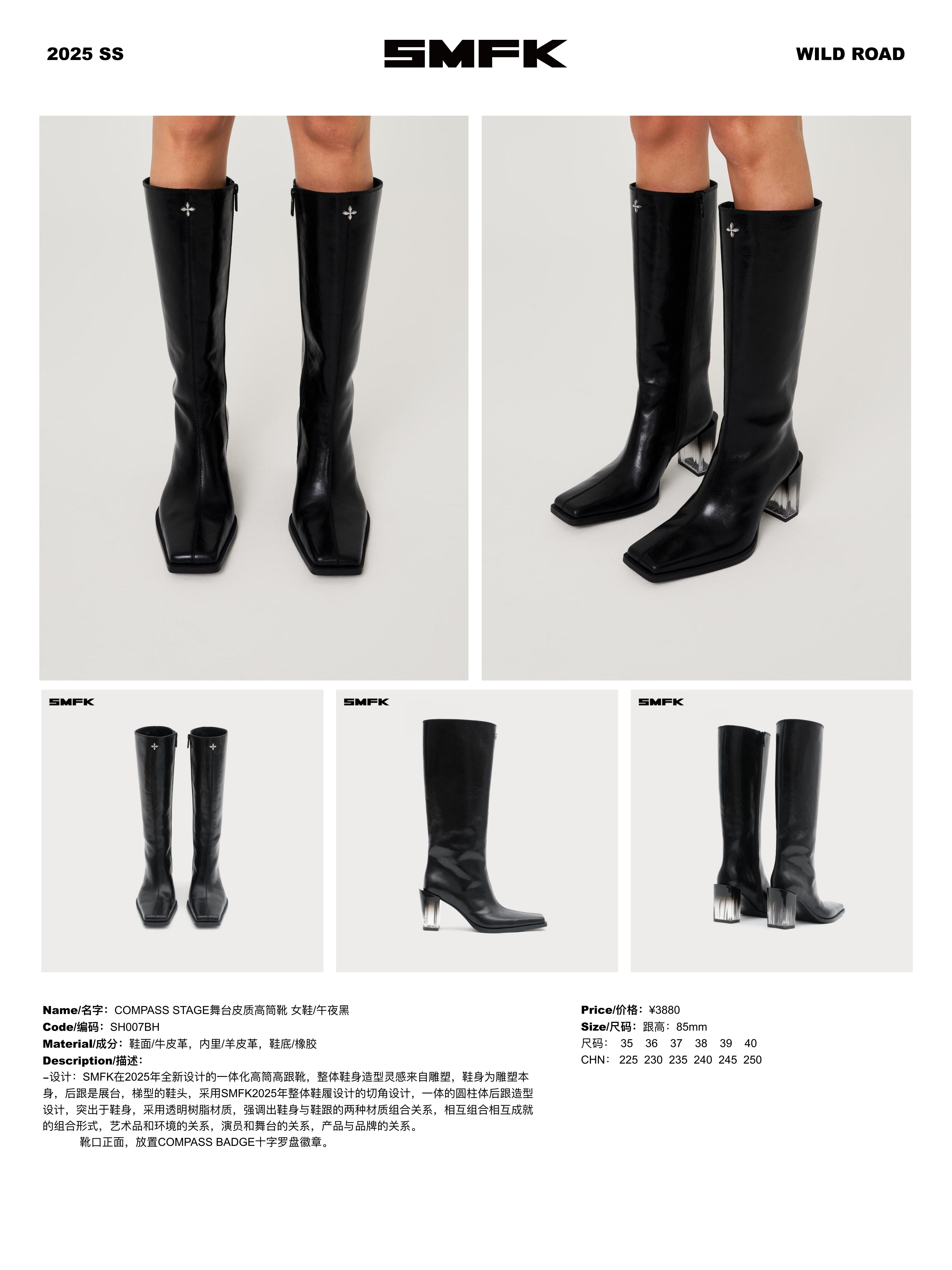 SMFK 2504 舞台皮质高筒靴女鞋/午夜黑