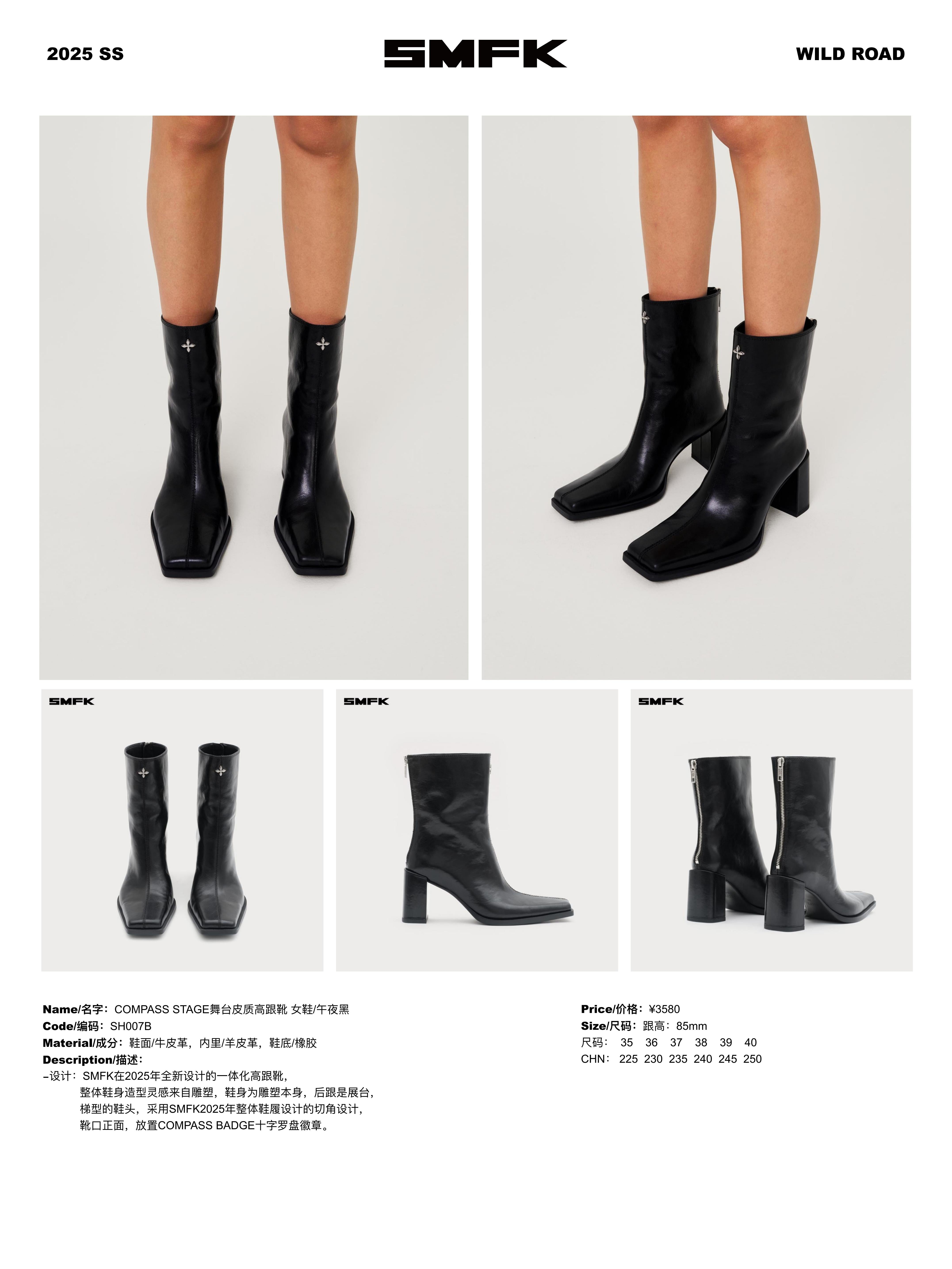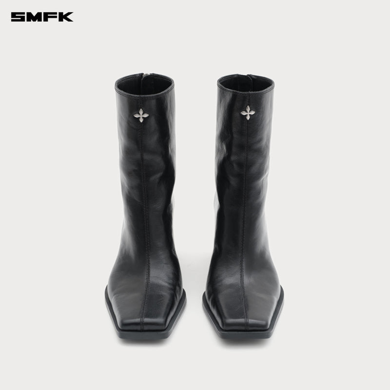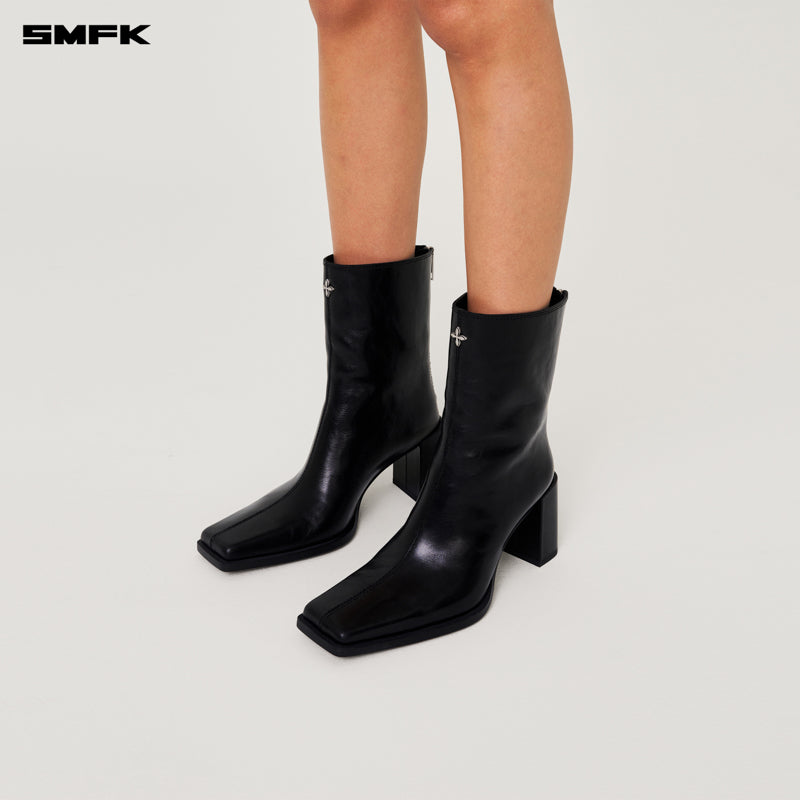 SMFK 2504 舞台皮质高跟靴女鞋/午夜黑