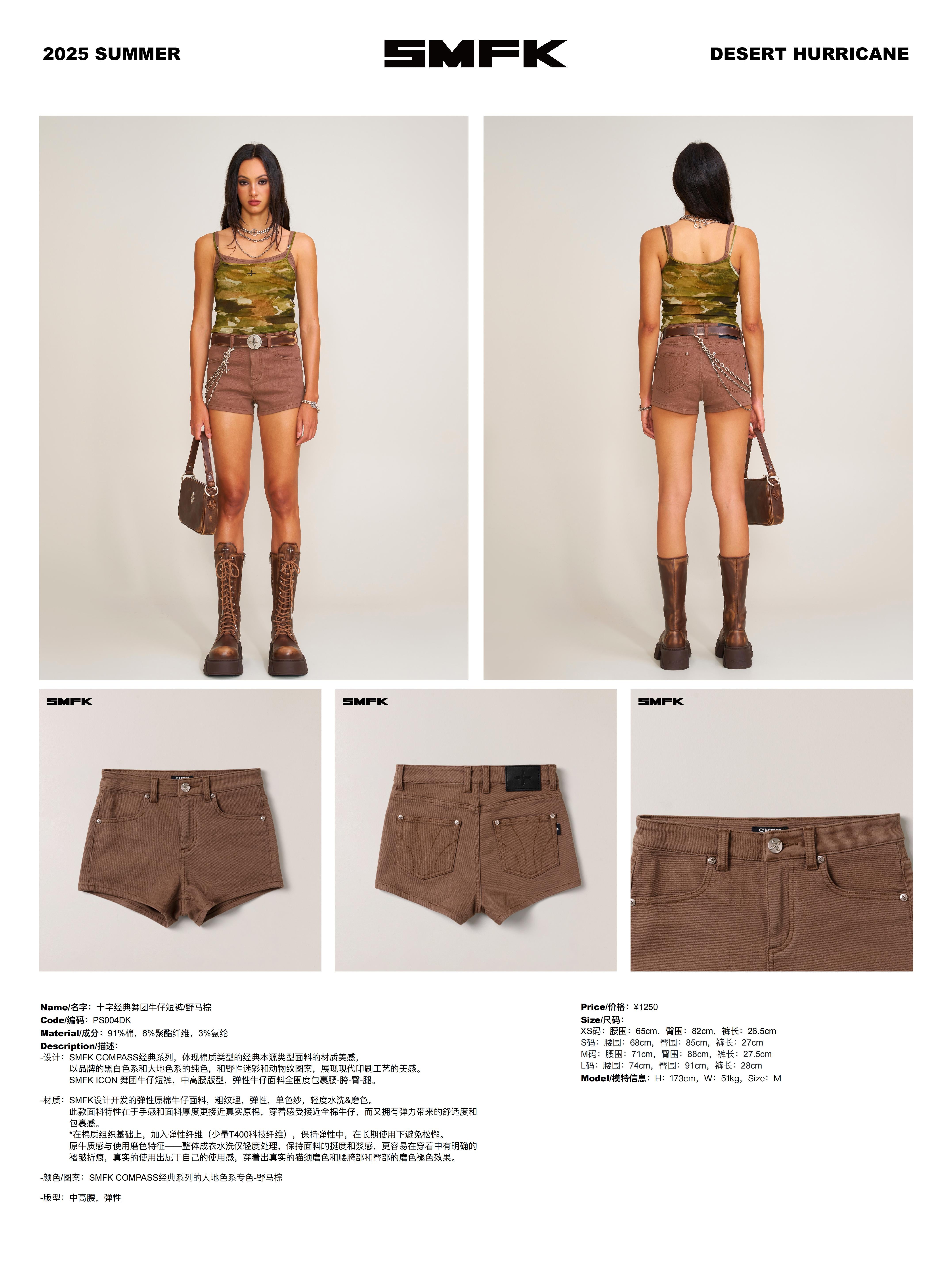 SMFK 2506 十字经典舞团牛仔短裤/野马棕