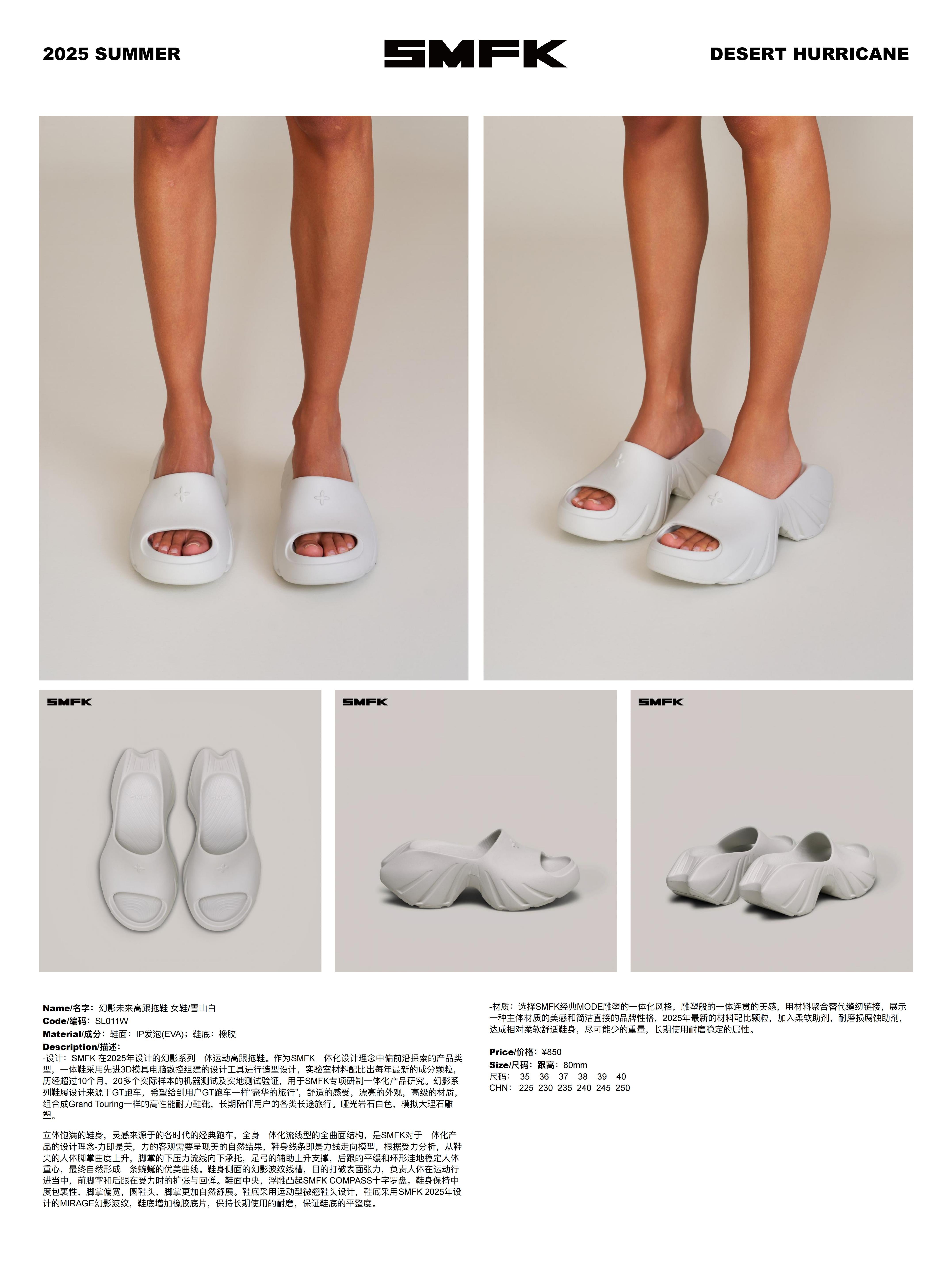 SMFK 2506 幻影未来高跟拖鞋女鞋/雪山白